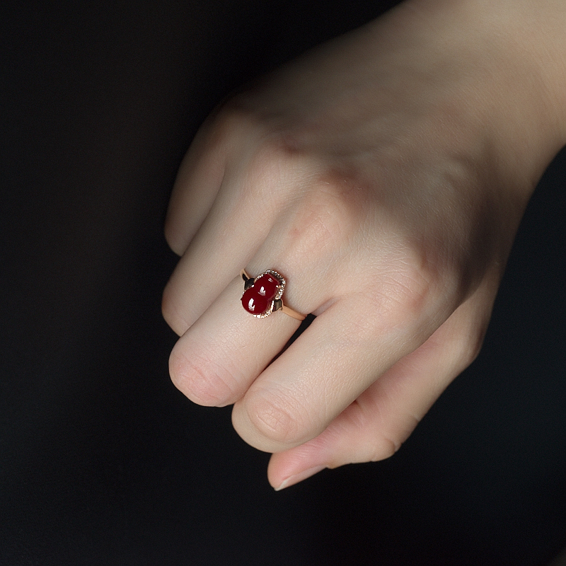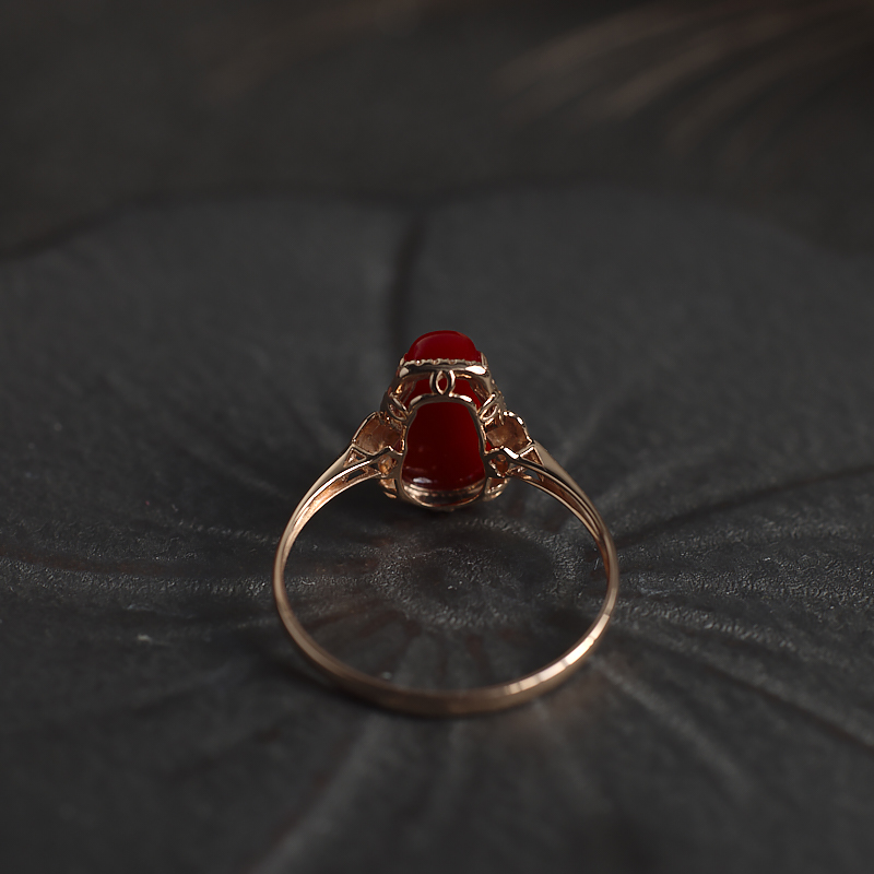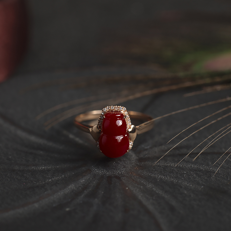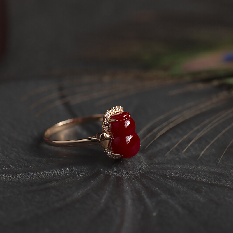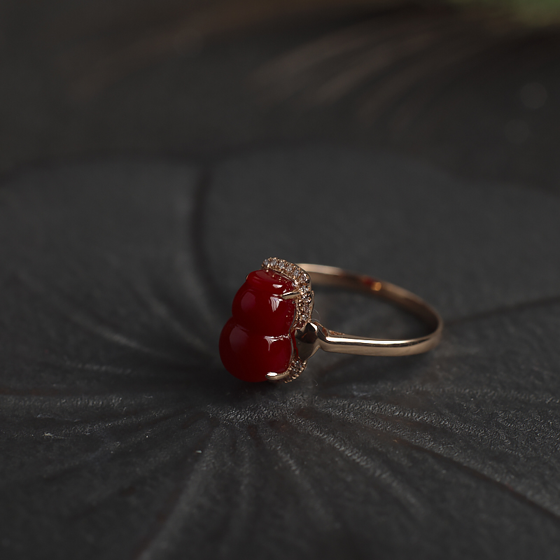 • 18K阿卡牛血红珊瑚葫芦戒指