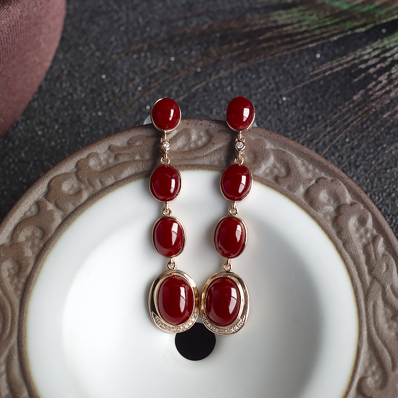 • [名  称] 18K阿卡牛血红珊瑚耳坠
