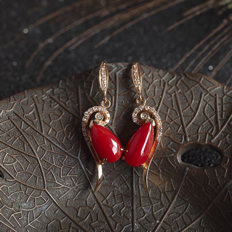 • [名  称] 18K阿卡牛血红珊瑚水滴耳环