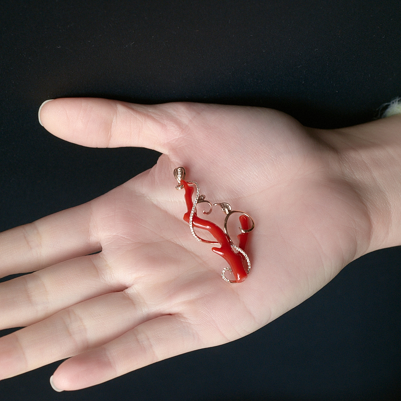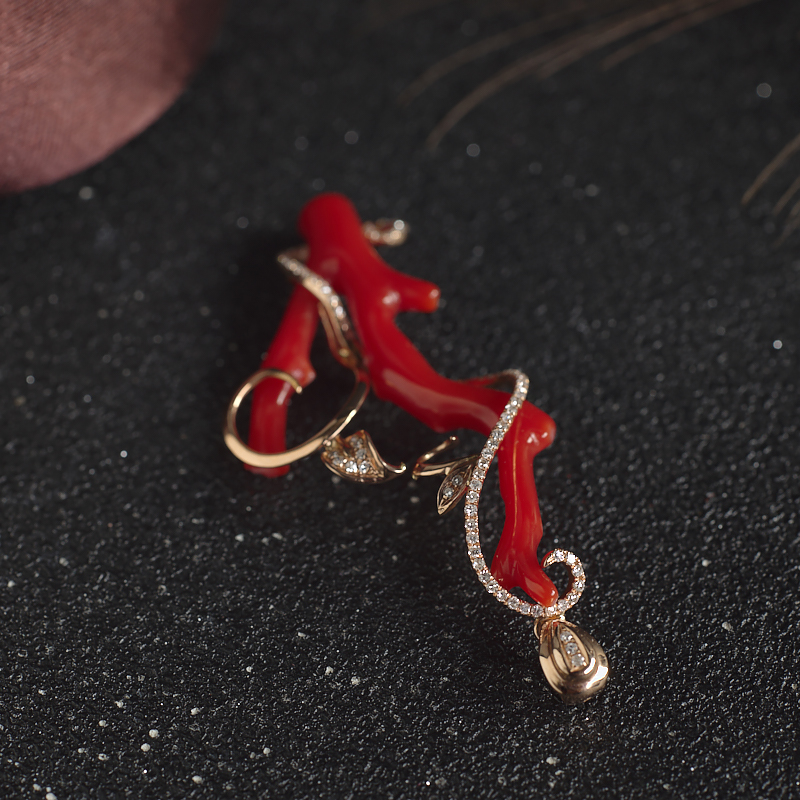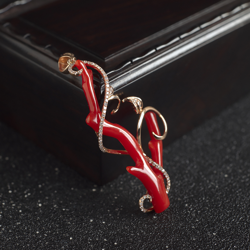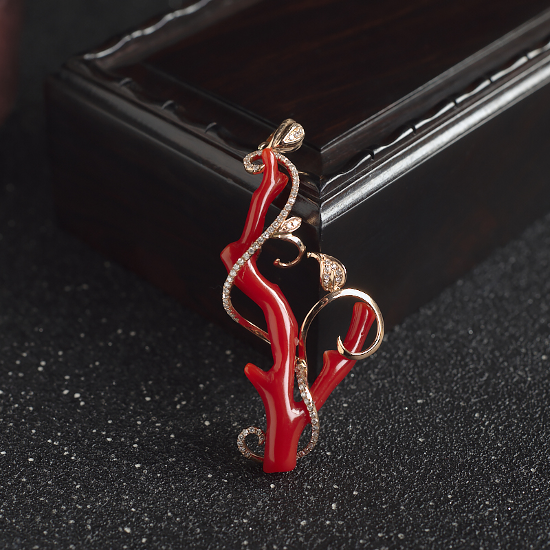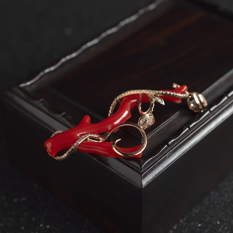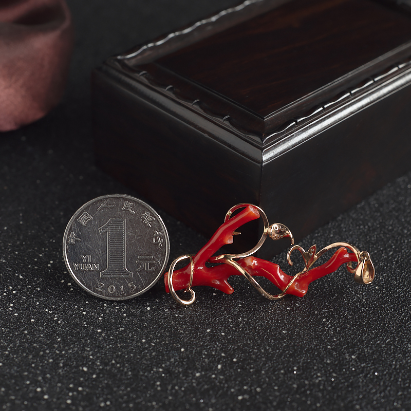• 18K阿卡牛血红珊瑚树枝吊坠