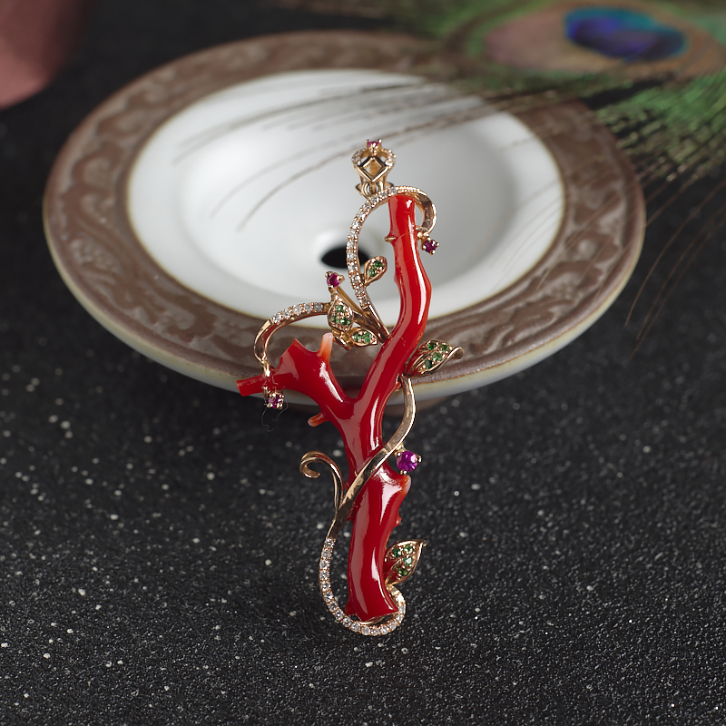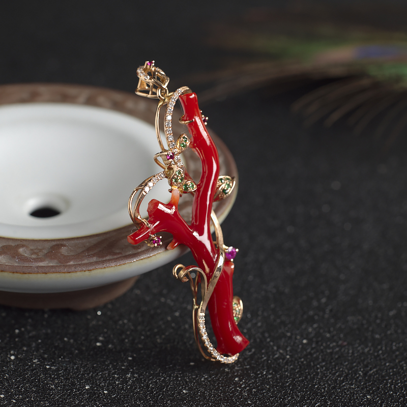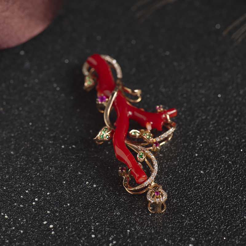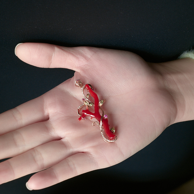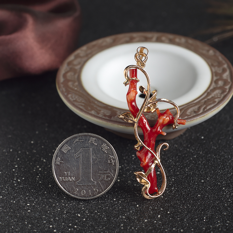 • 18K阿卡牛血红珊瑚树枝吊坠