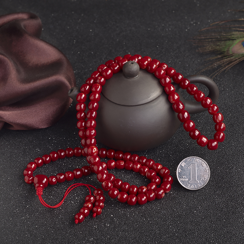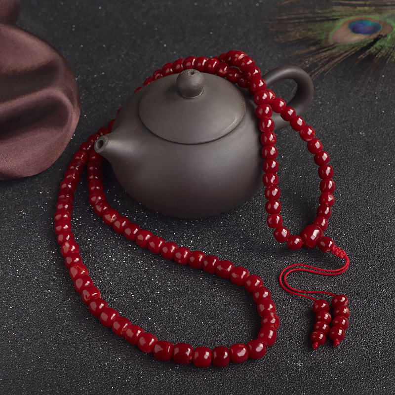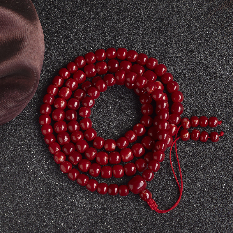 • 阿卡牛血红珊瑚桶珠108佛珠