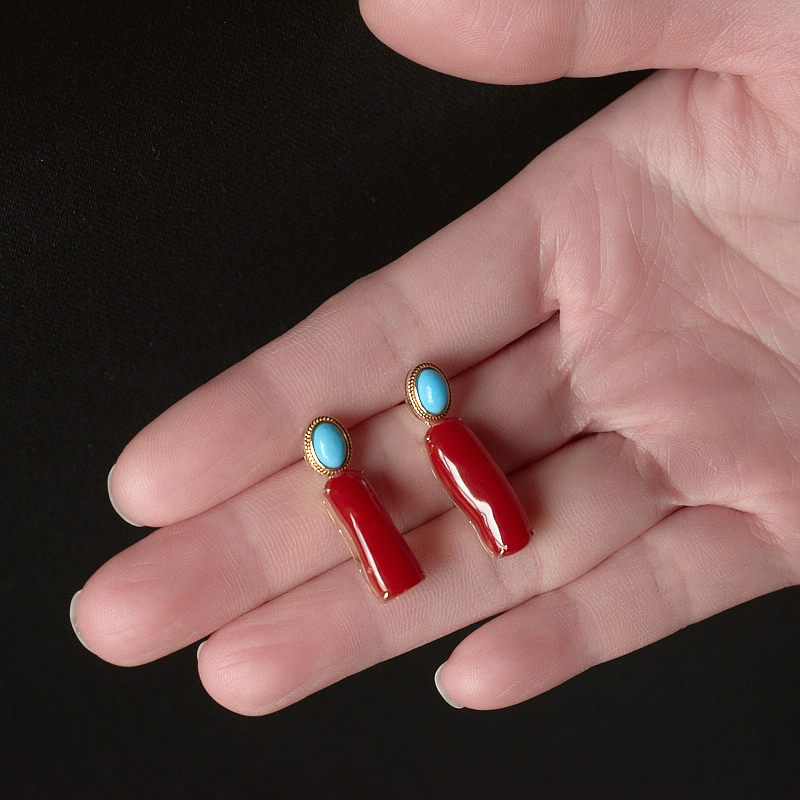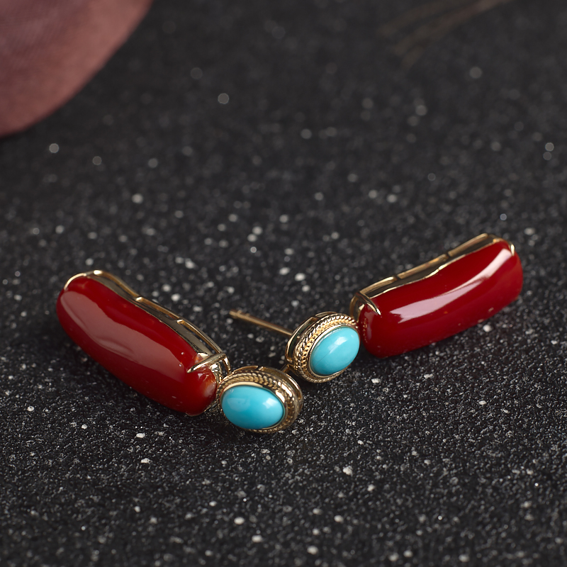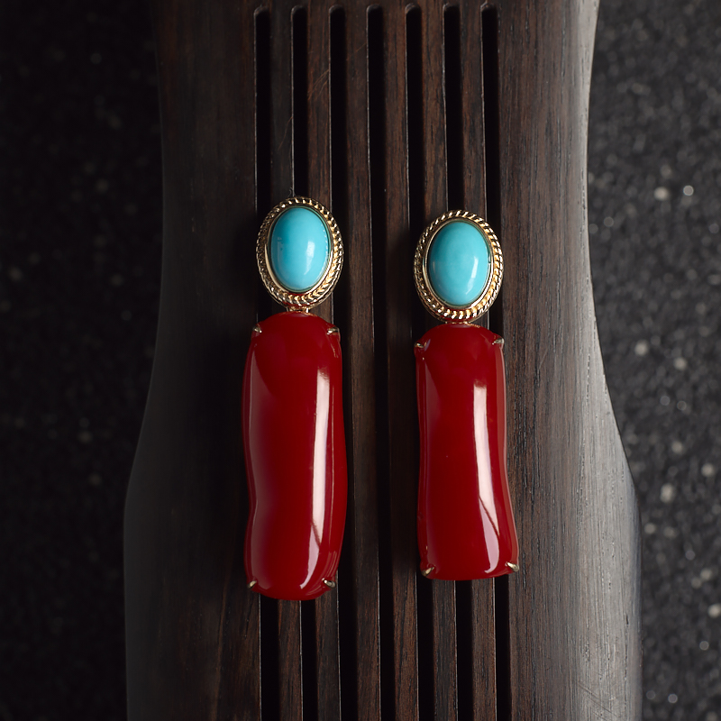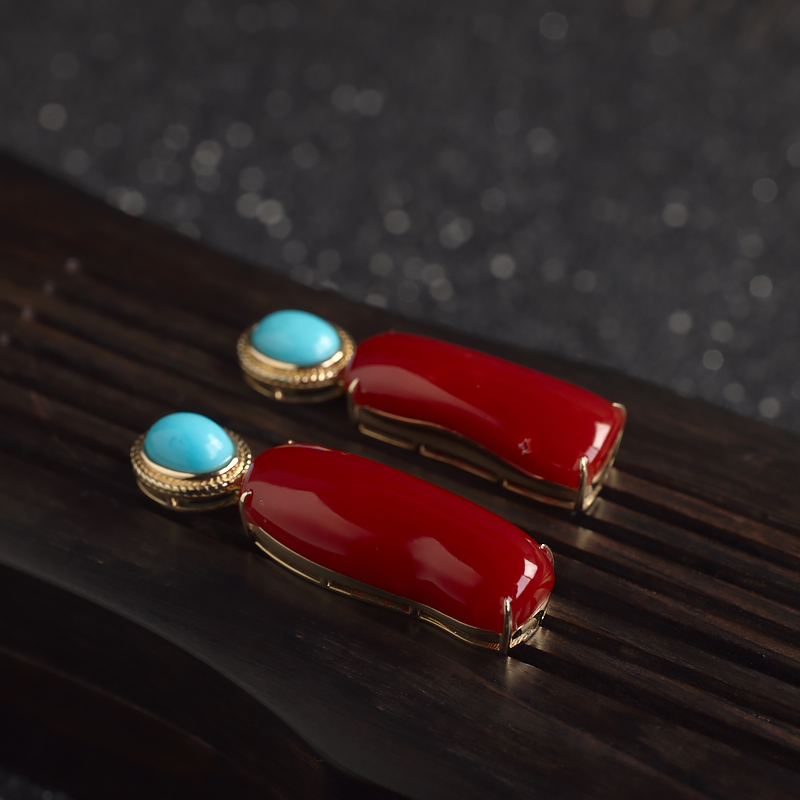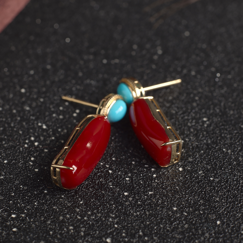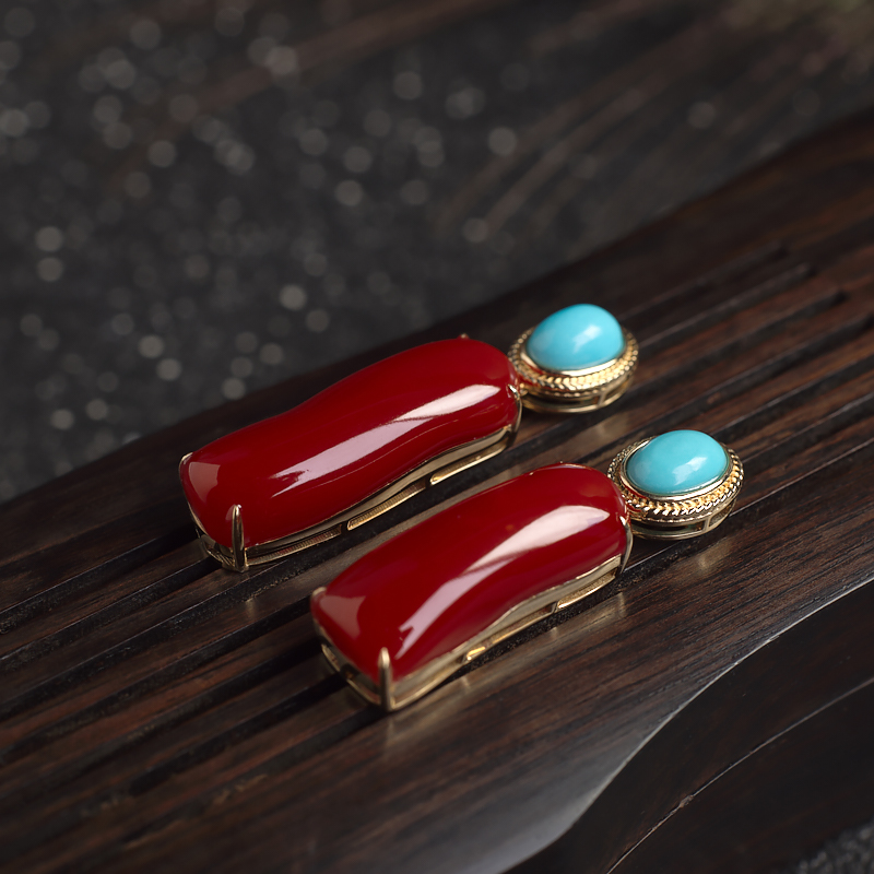 • [名  称] 18K阿卡牛血红珊瑚随形耳坠