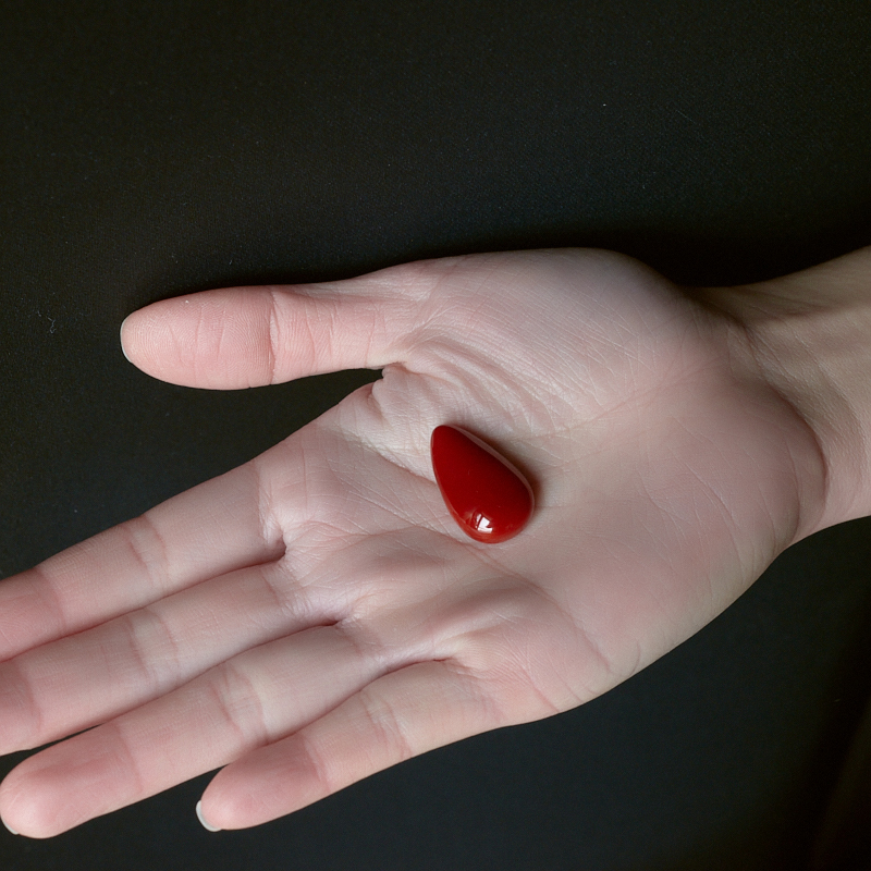 • 阿卡牛血红珊瑚水滴戒面