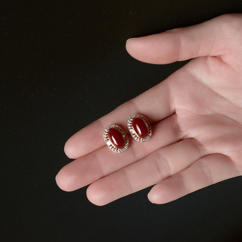• [名  称] 18K阿卡牛血红珊瑚耳钉
