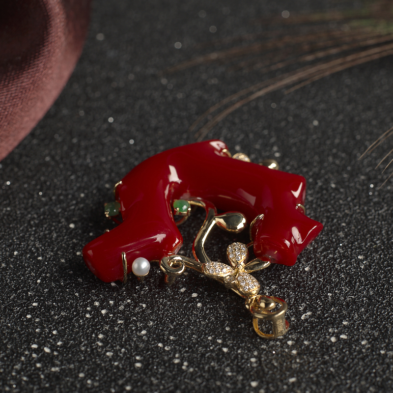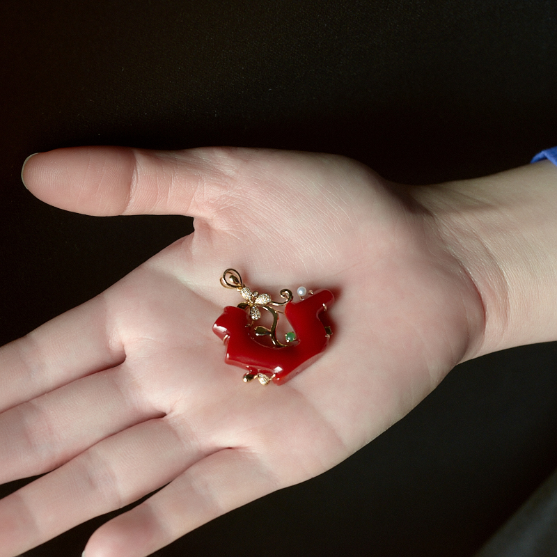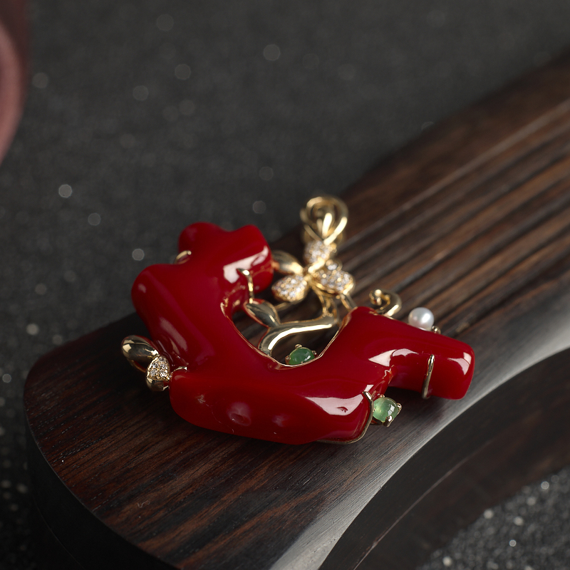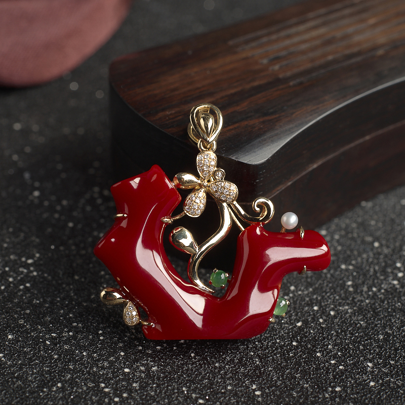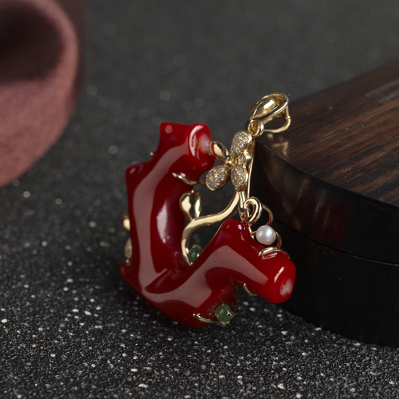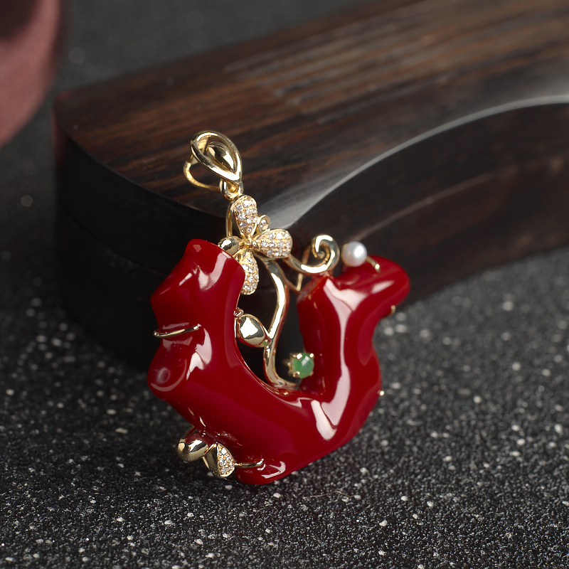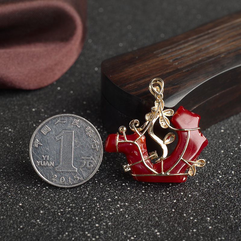 • 18K阿卡牛血红珊瑚树枝吊坠