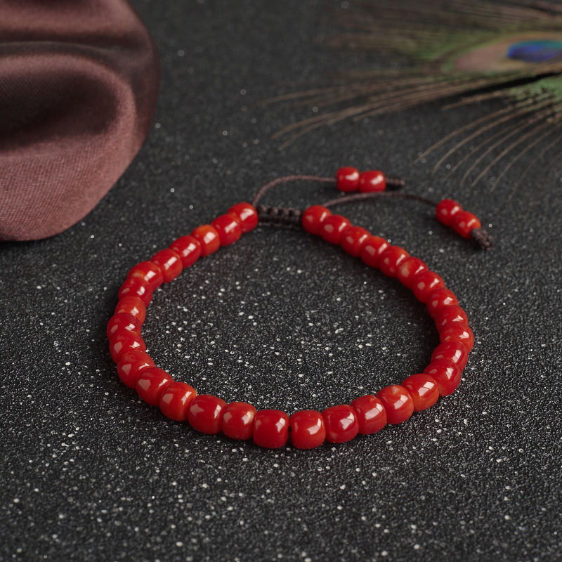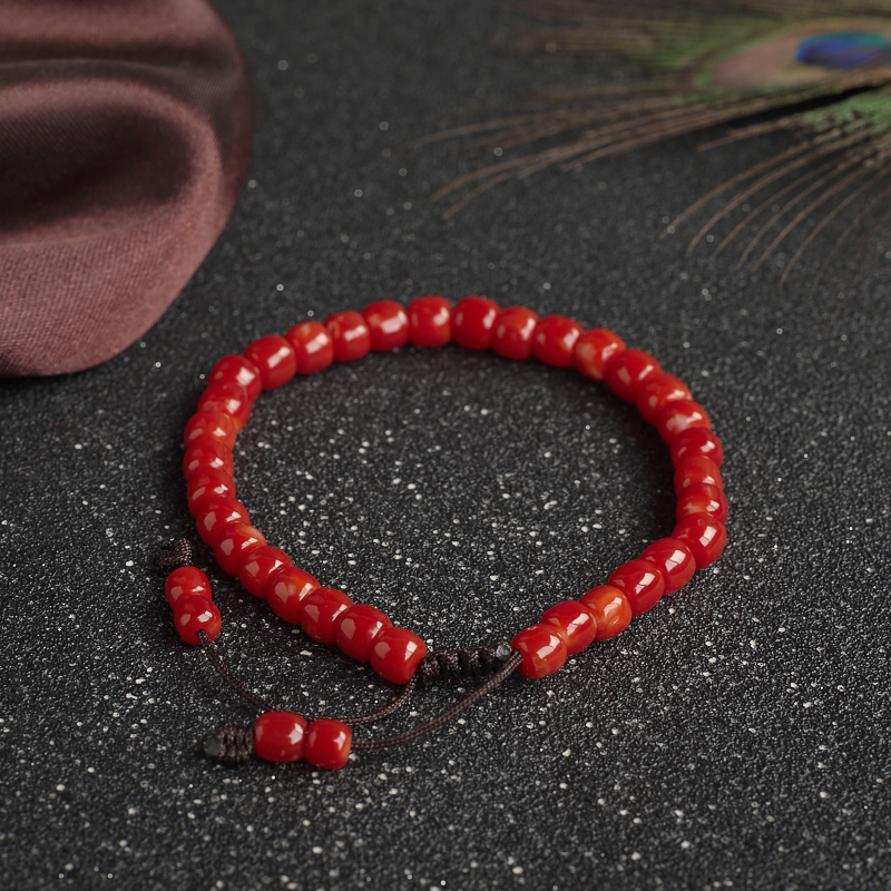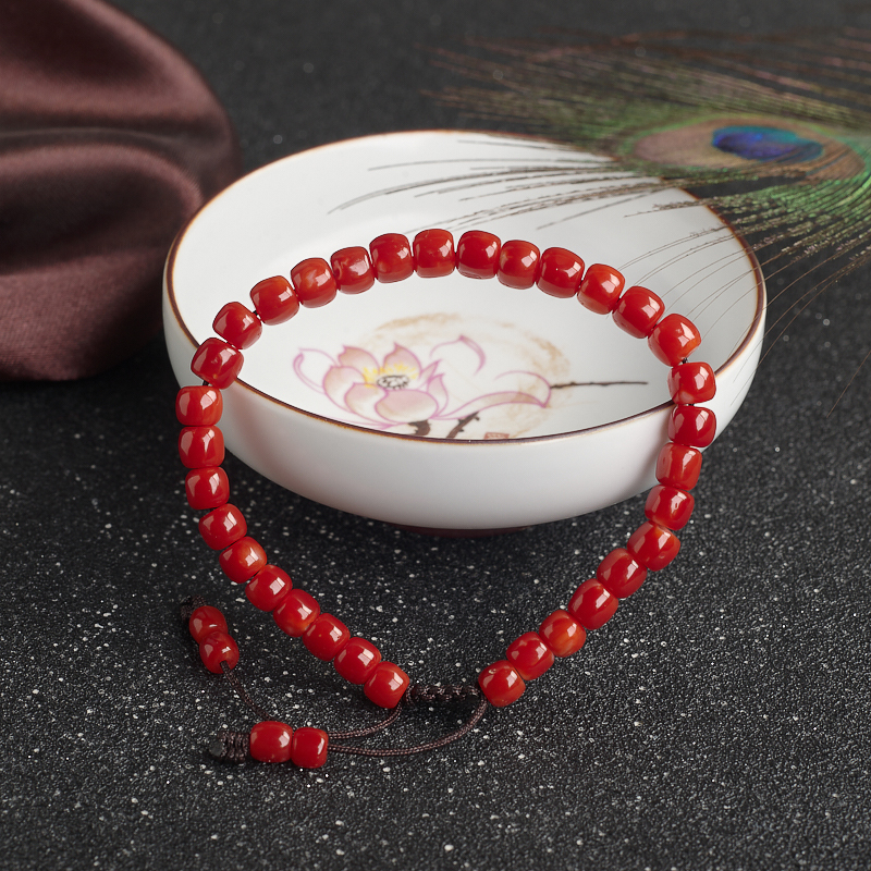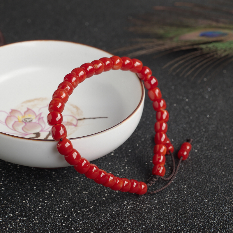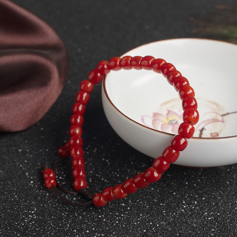 • 阿卡珊瑚桶珠单圈手串