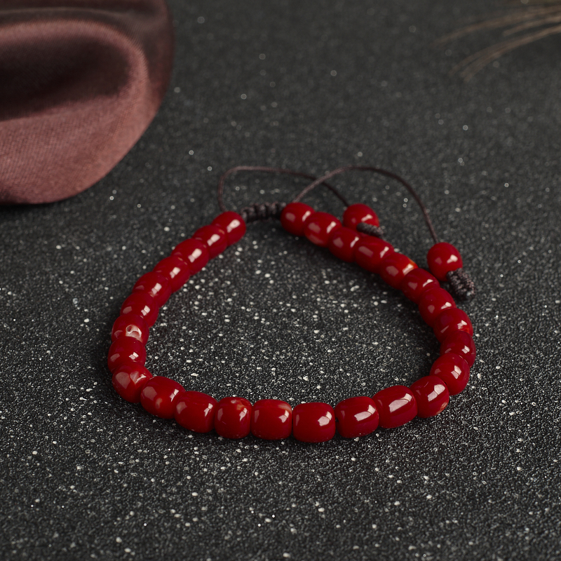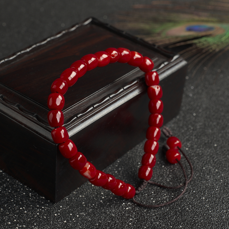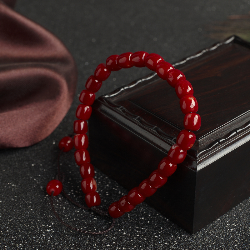 • 阿卡牛血红珊瑚桶珠单圈手串
