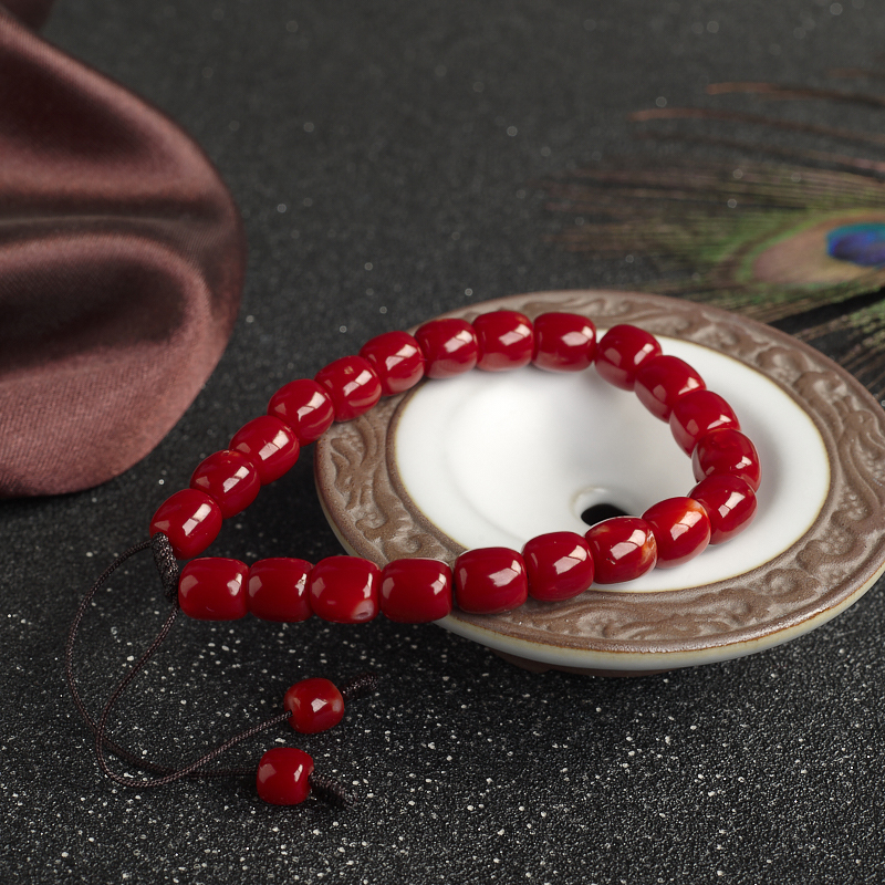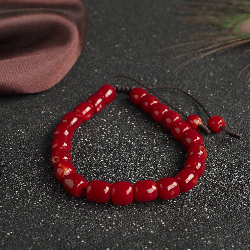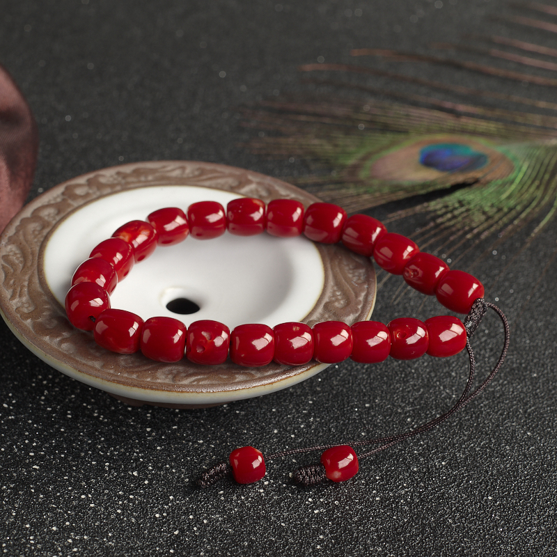 • 阿卡牛血红珊瑚桶珠单圈手串