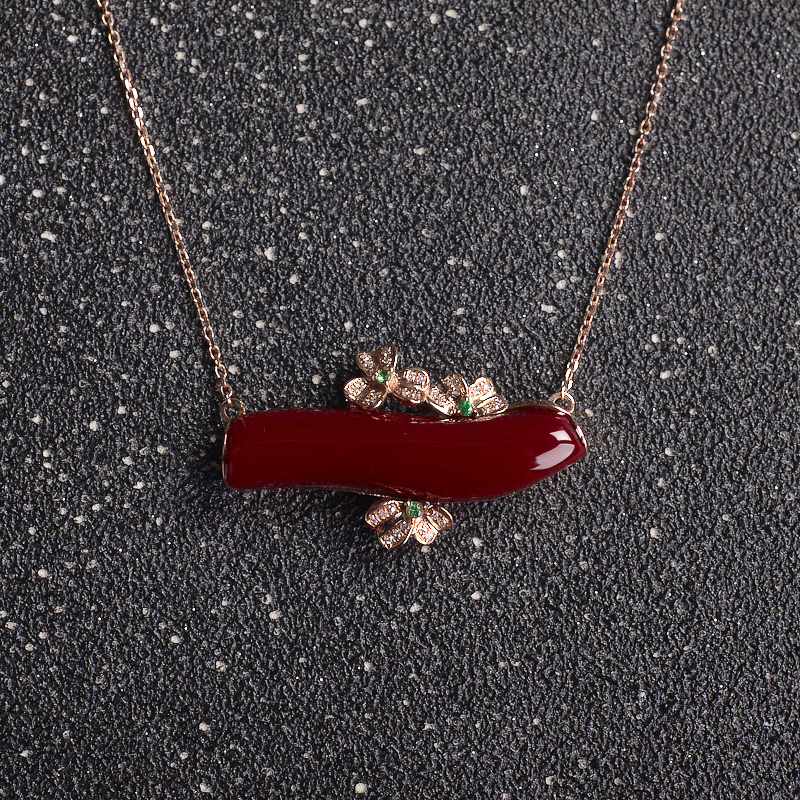 • [名  称] 18K阿卡牛血红珊瑚随形项链