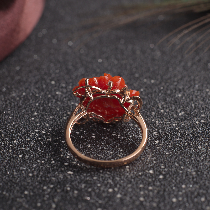 • [名  称] 18K阿卡珊瑚牡丹花戒指