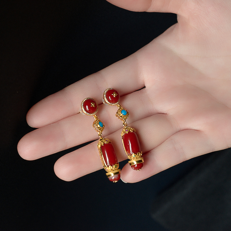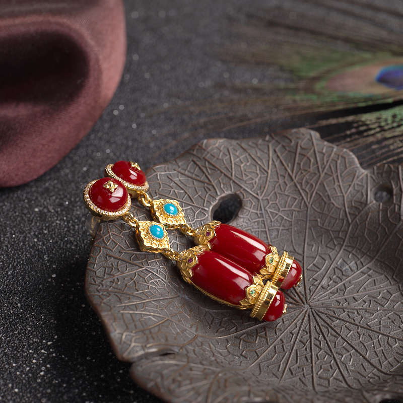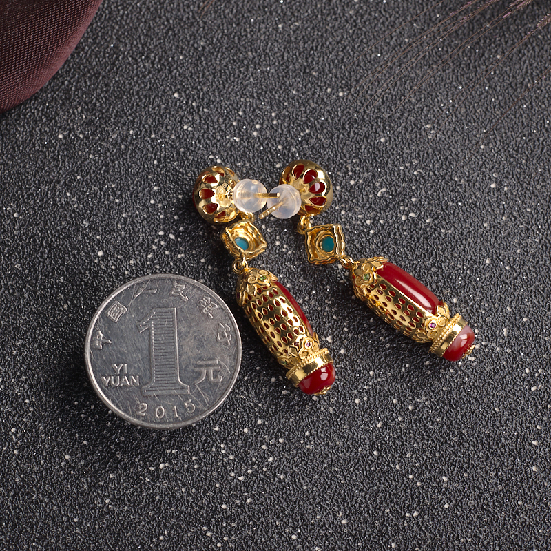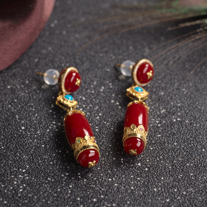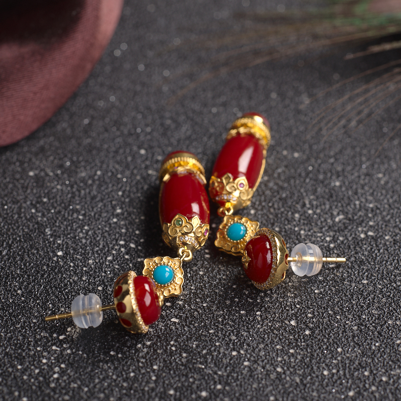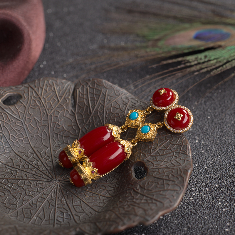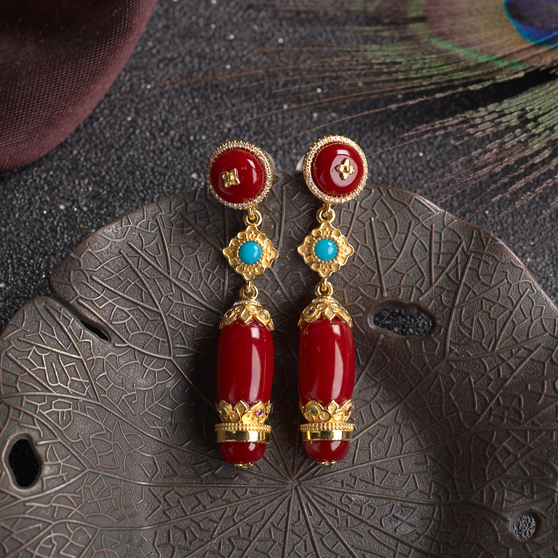 • 18K阿卡牛血红珊瑚耳坠