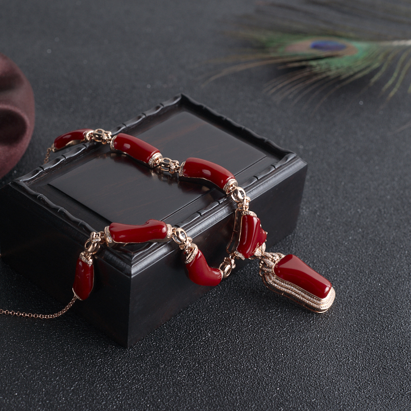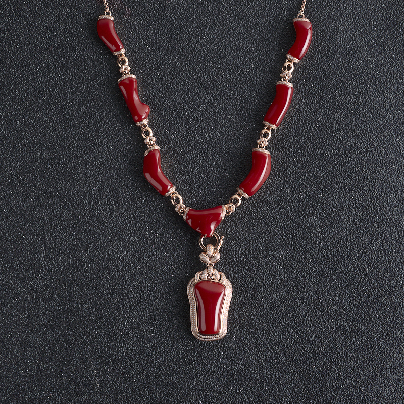 • 18K阿卡牛血红珊瑚随形吊坠/项链两用款