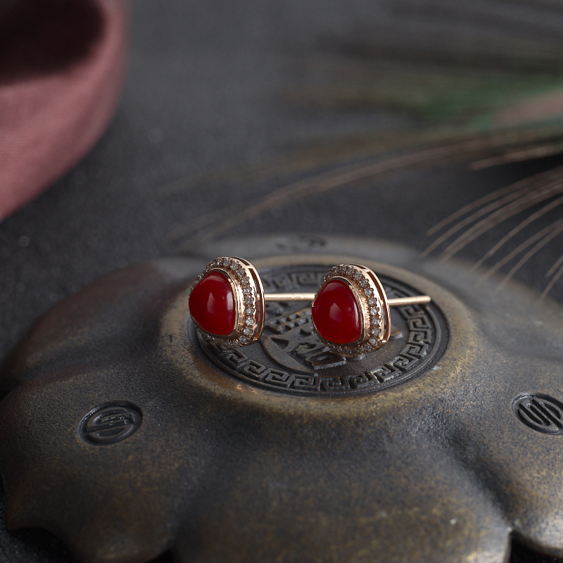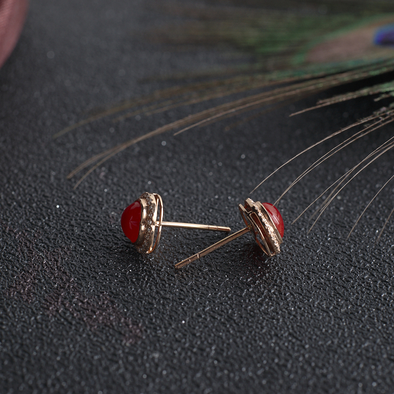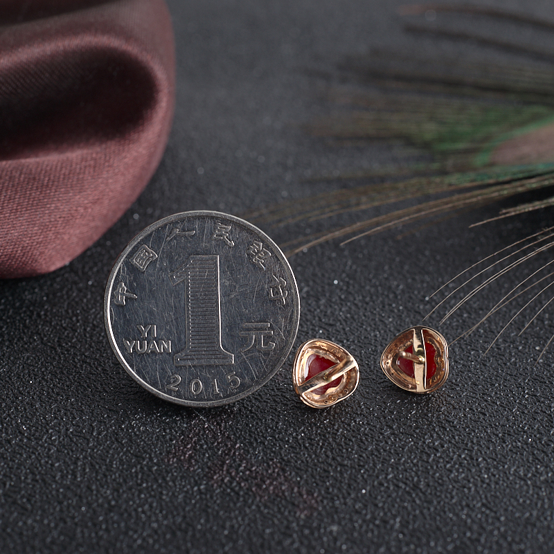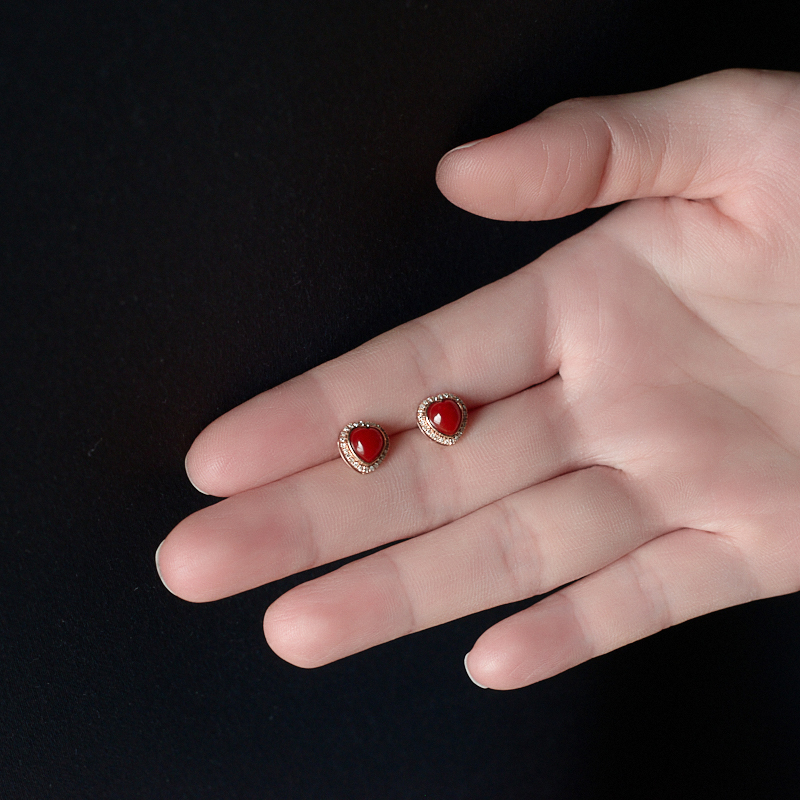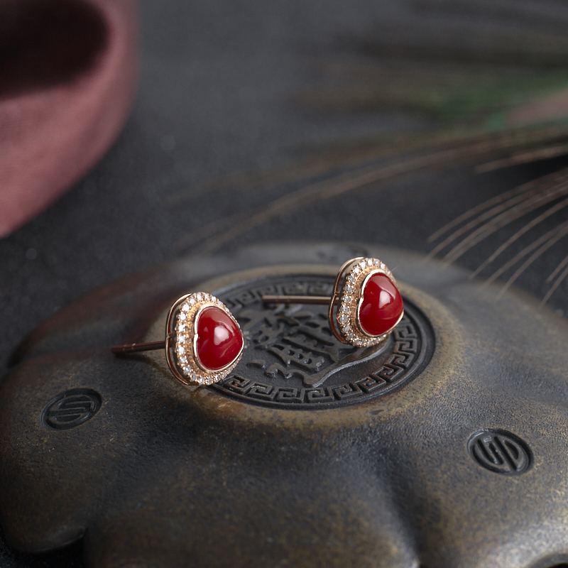 • [名  称] 18K阿卡牛血红珊瑚心形耳钉