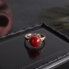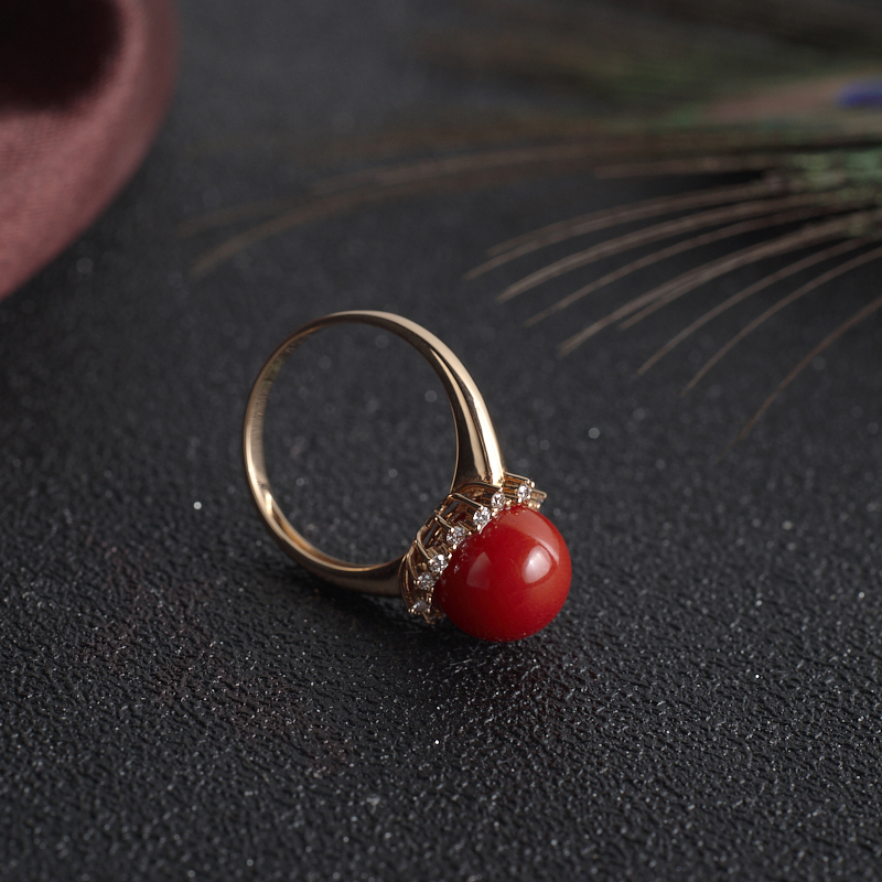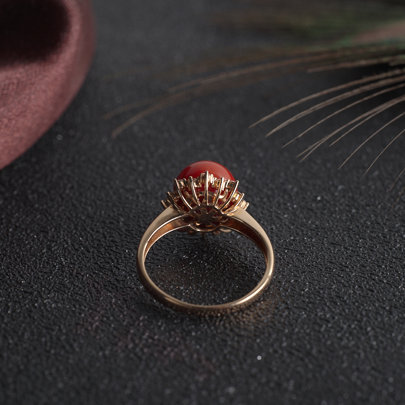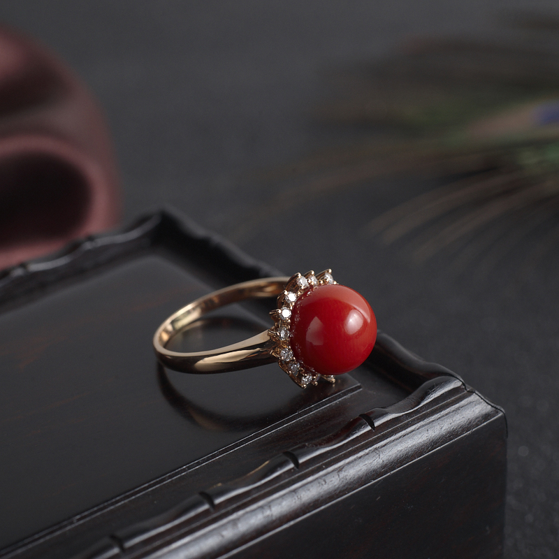 • 18K阿卡牛血红珊瑚圆珠戒指