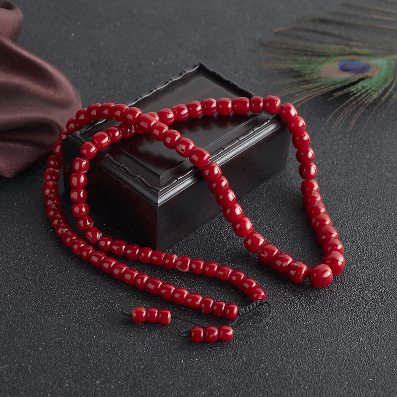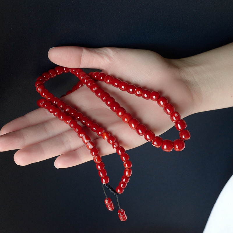 • 阿卡牛血红珊瑚桶珠塔链