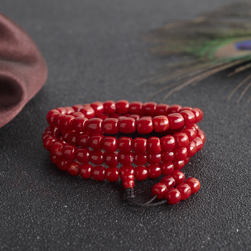 • 阿卡牛血红珊瑚桶珠108佛珠