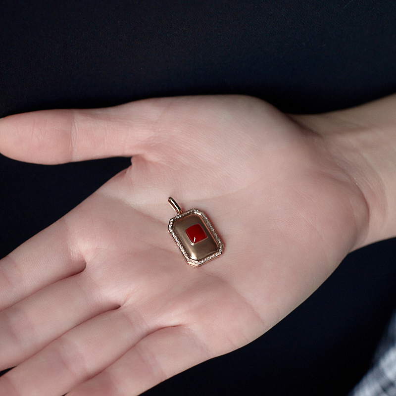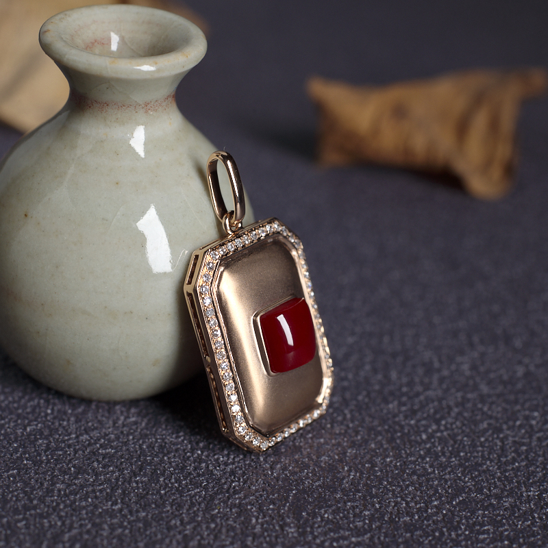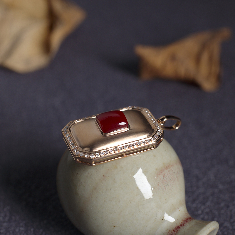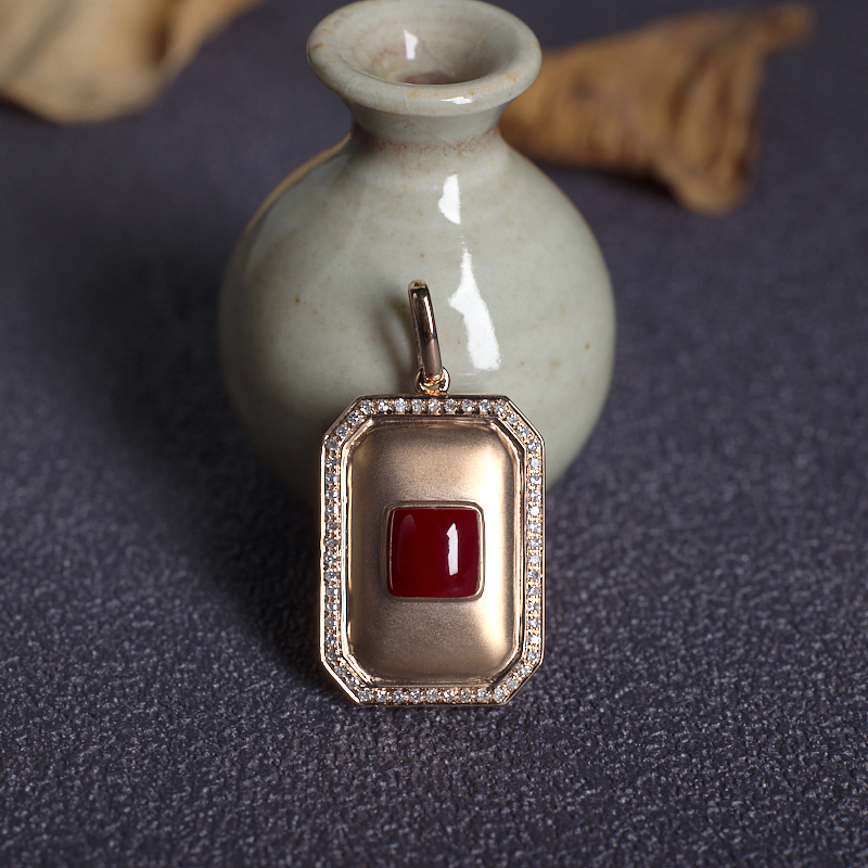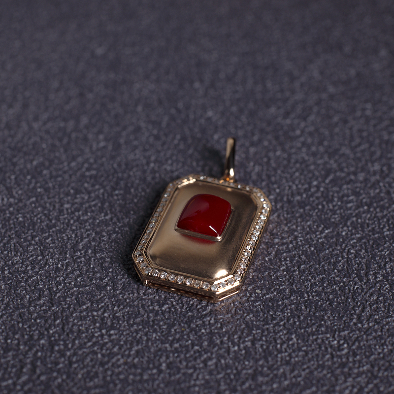 • 18K阿卡牛血红珊瑚方形吊坠
