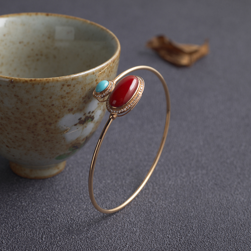 • 56.5mm18K阿卡牛血红珊瑚手镯
