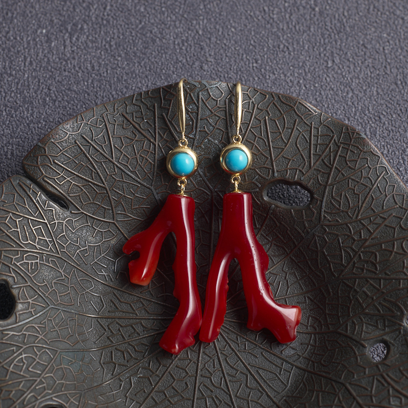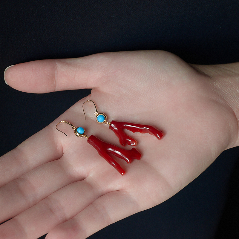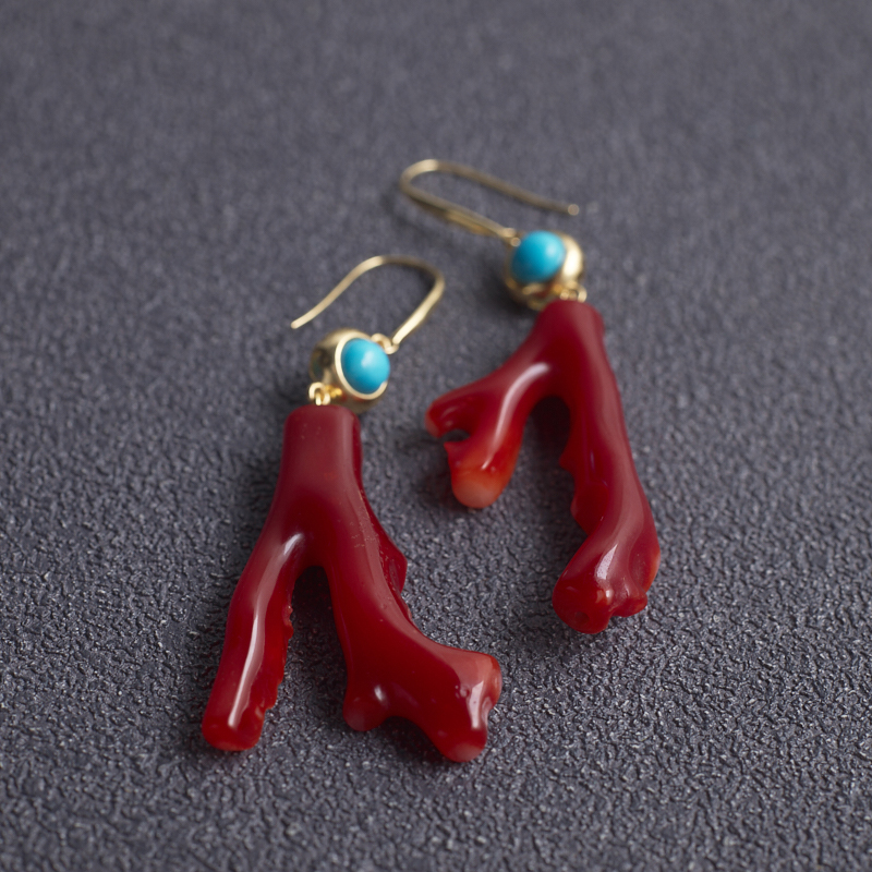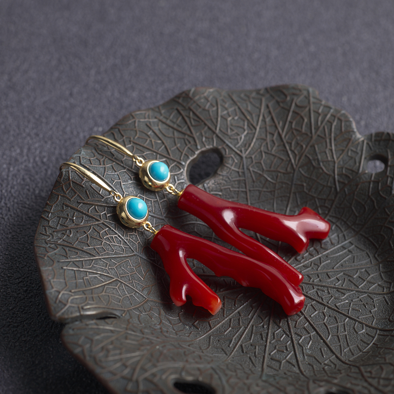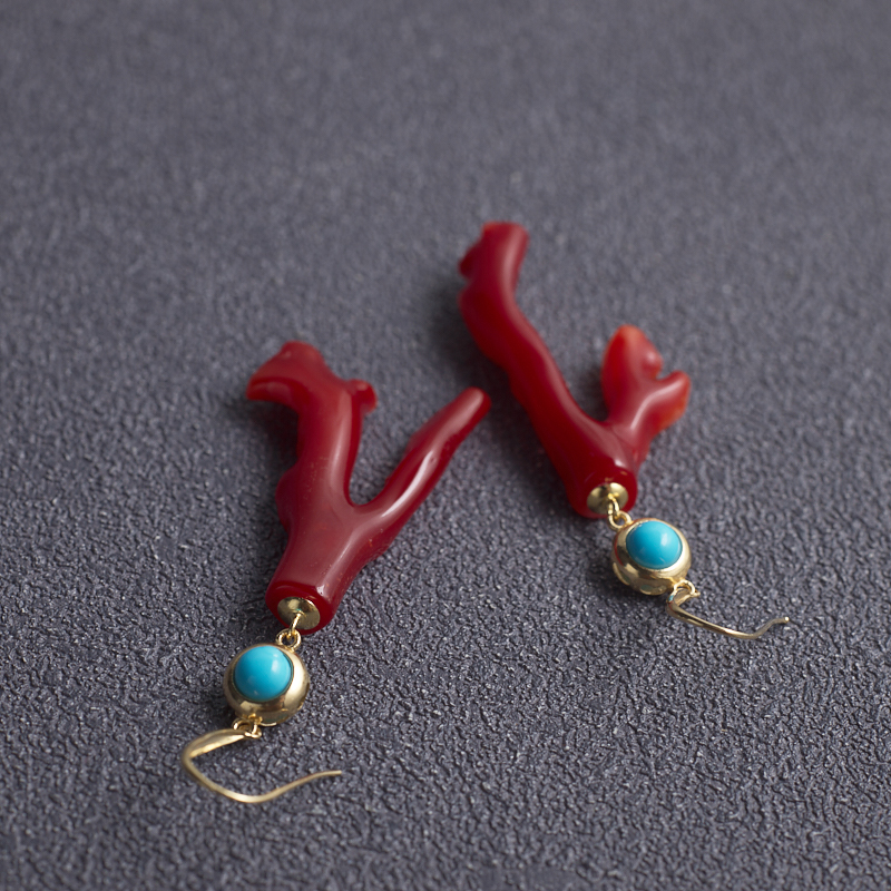 • 18K阿卡牛血红珊瑚树枝耳环