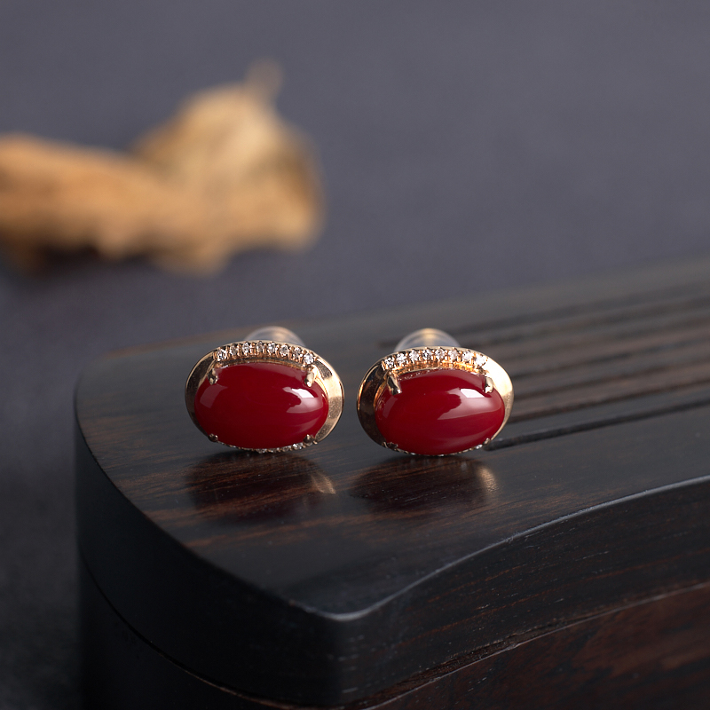 • [名  称] 18K阿卡牛血红珊瑚耳钉