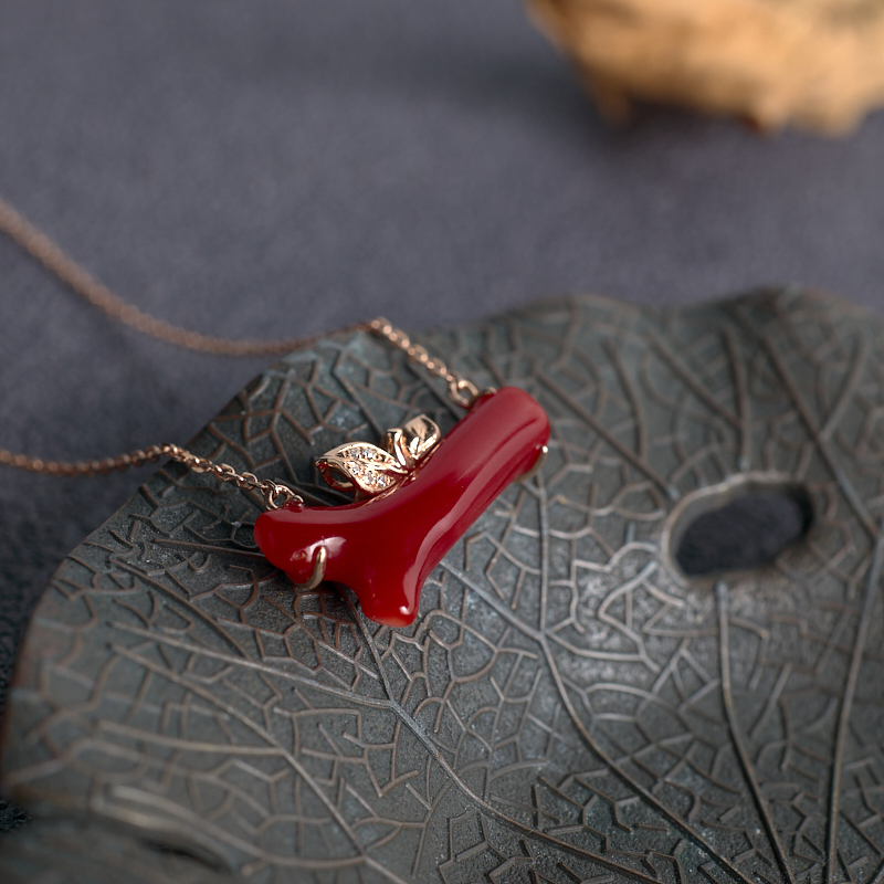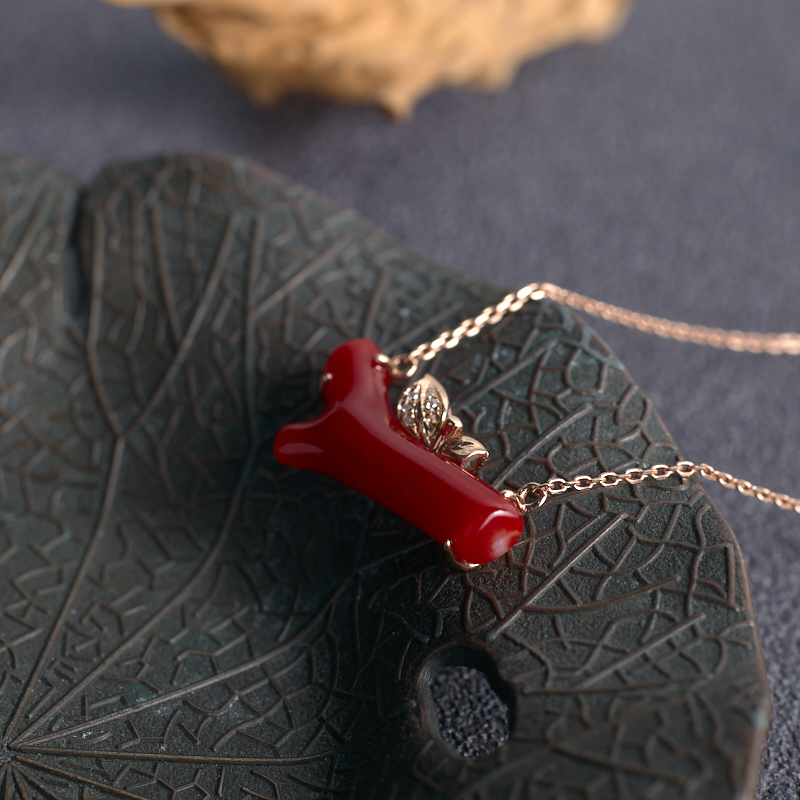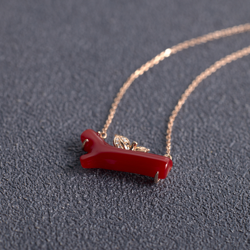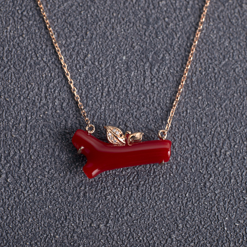 • 18K阿卡牛血红珊瑚树枝项链
