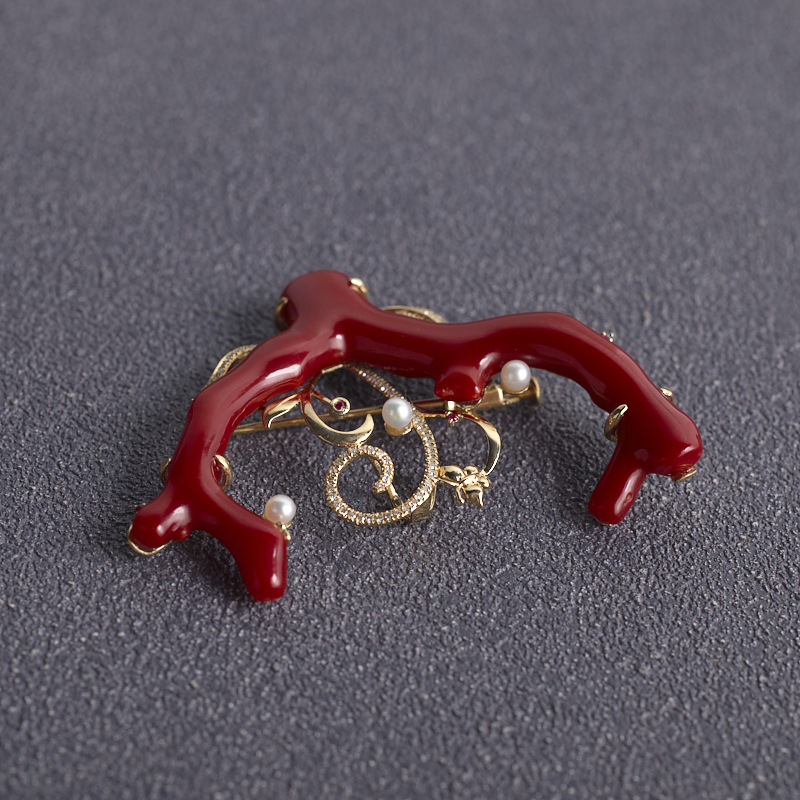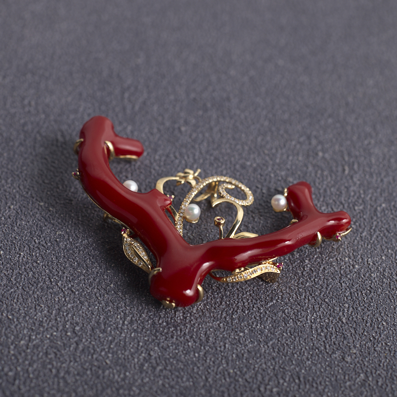 • [名  称] 18K阿卡牛血红珊瑚树枝吊坠/胸针两用款
