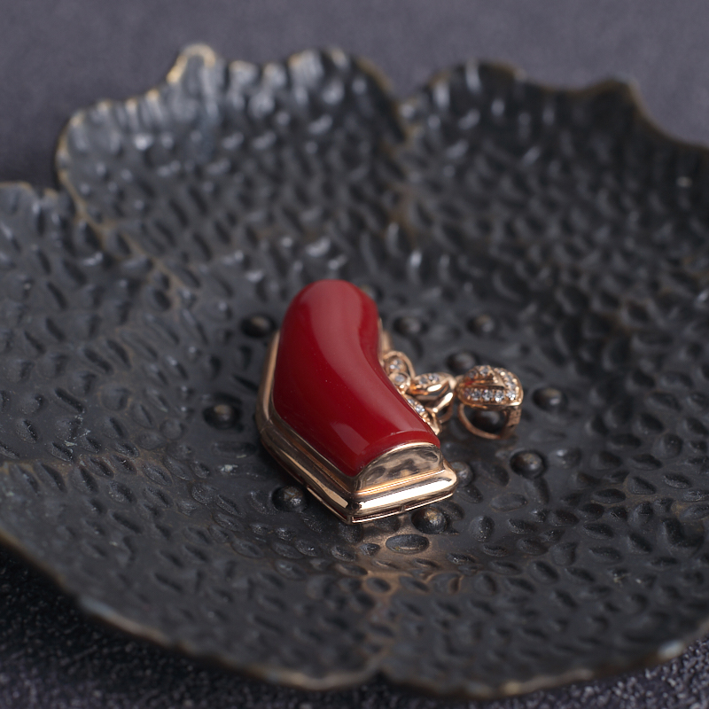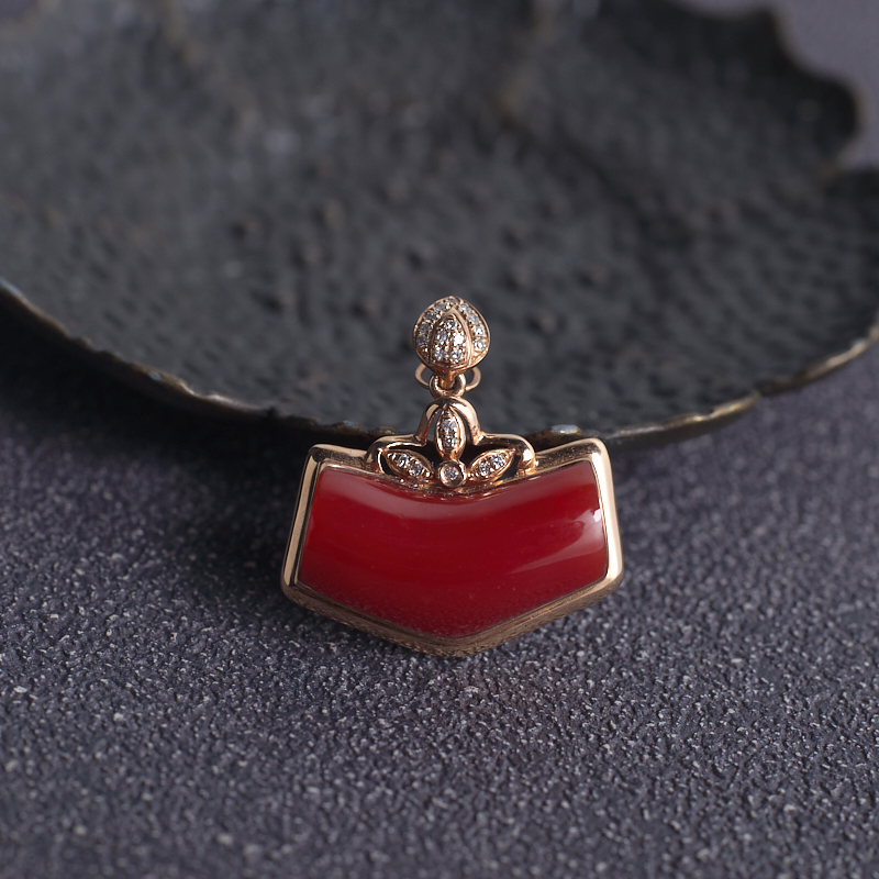 • 18K阿卡牛血红珊瑚随形吊坠