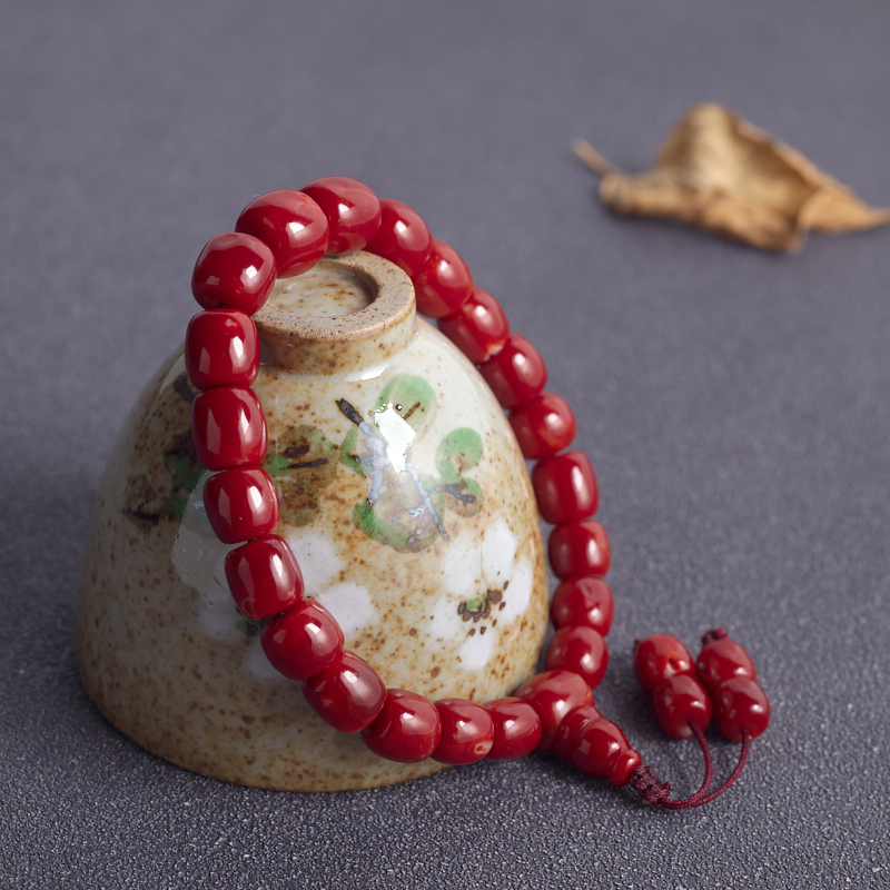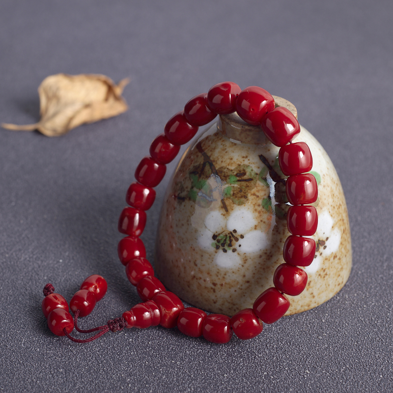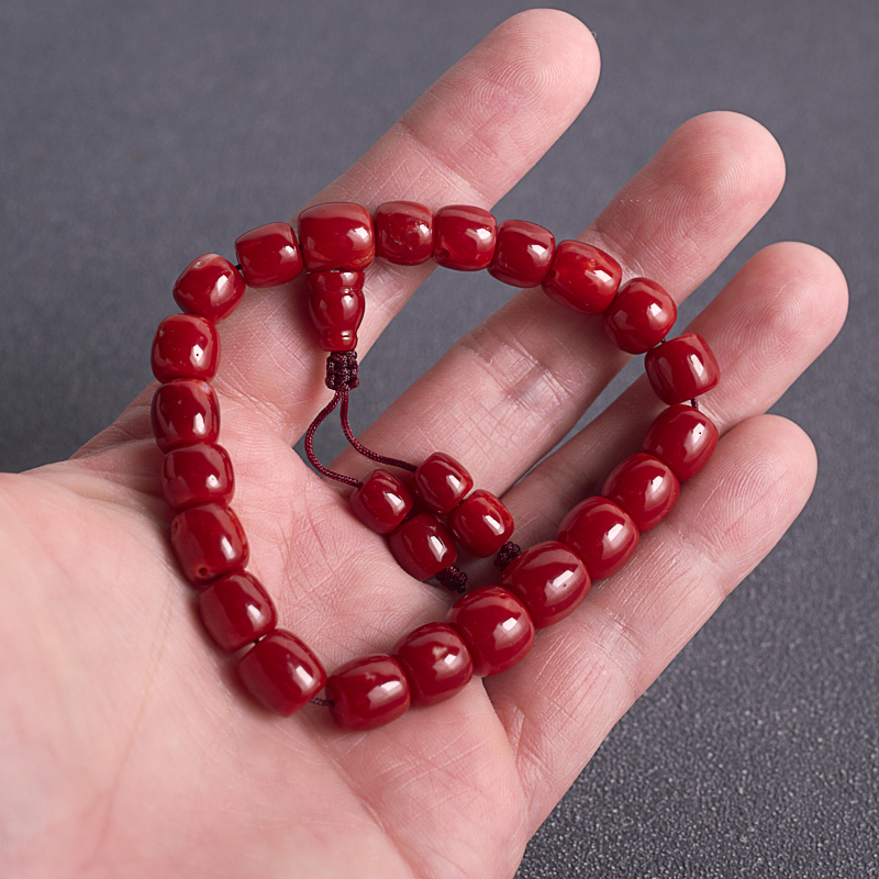 • 阿卡牛血红珊瑚桶珠单圈手串