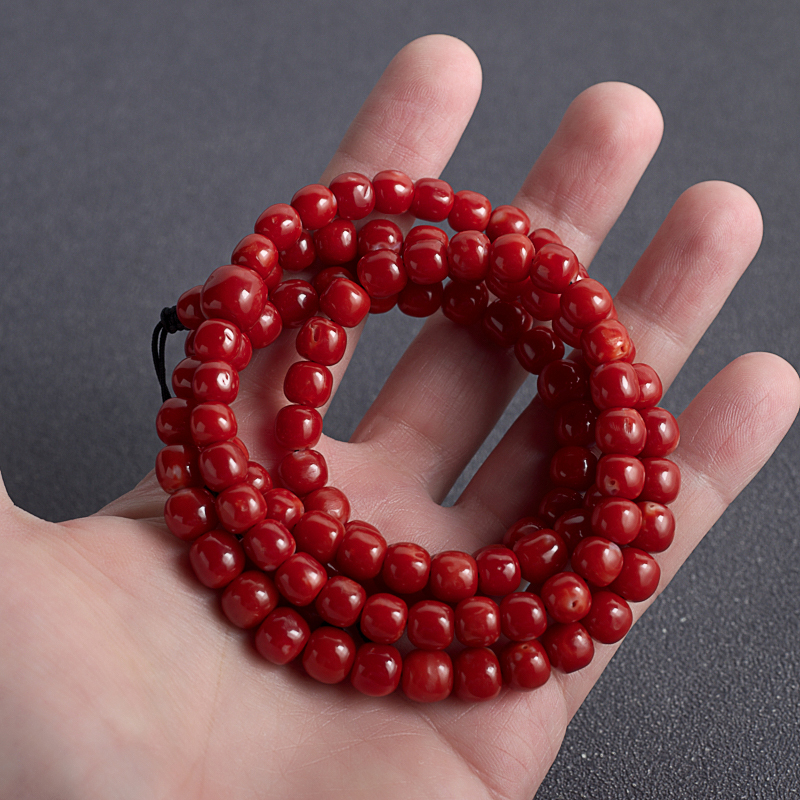 • 阿卡牛血红珊瑚桶珠108佛珠