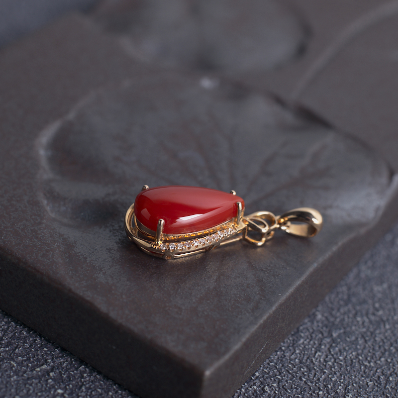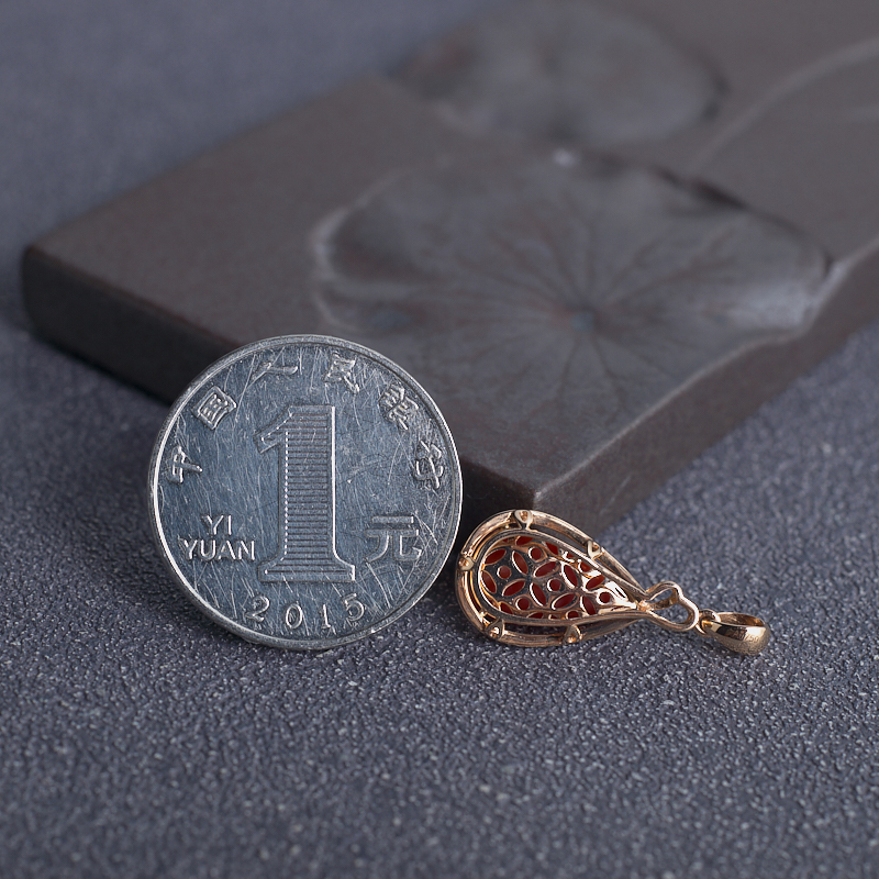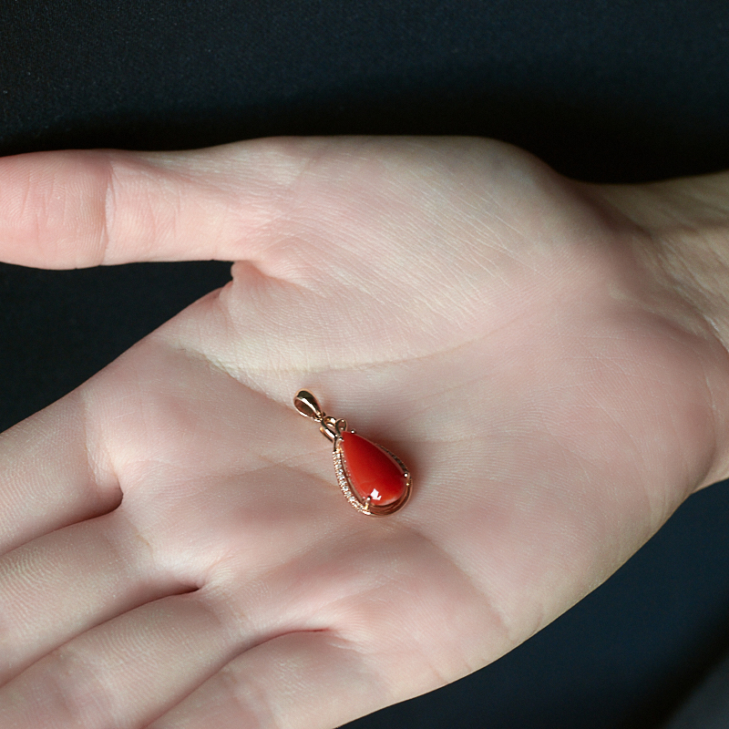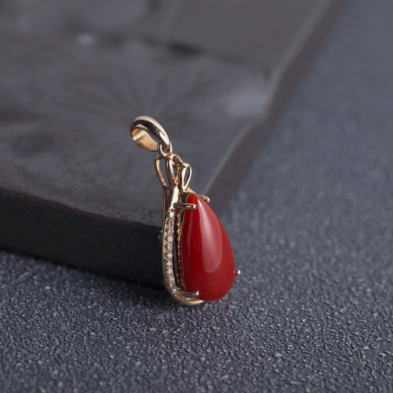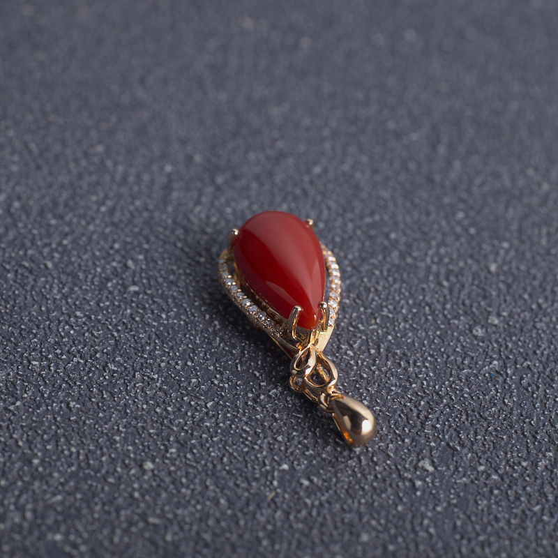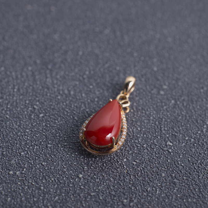 • 18K阿卡牛血红珊瑚水滴吊坠