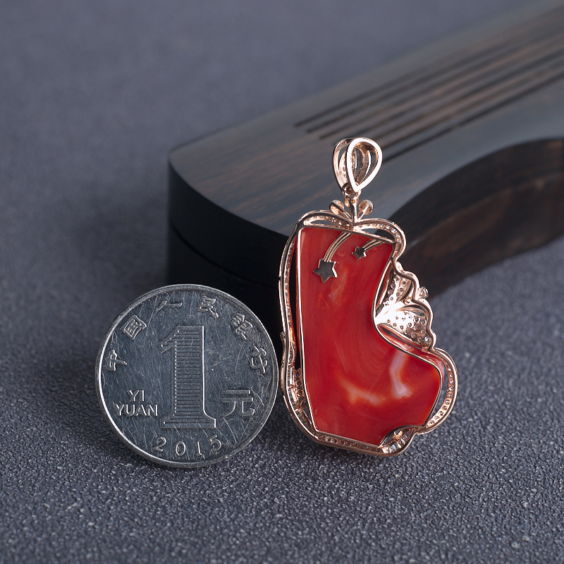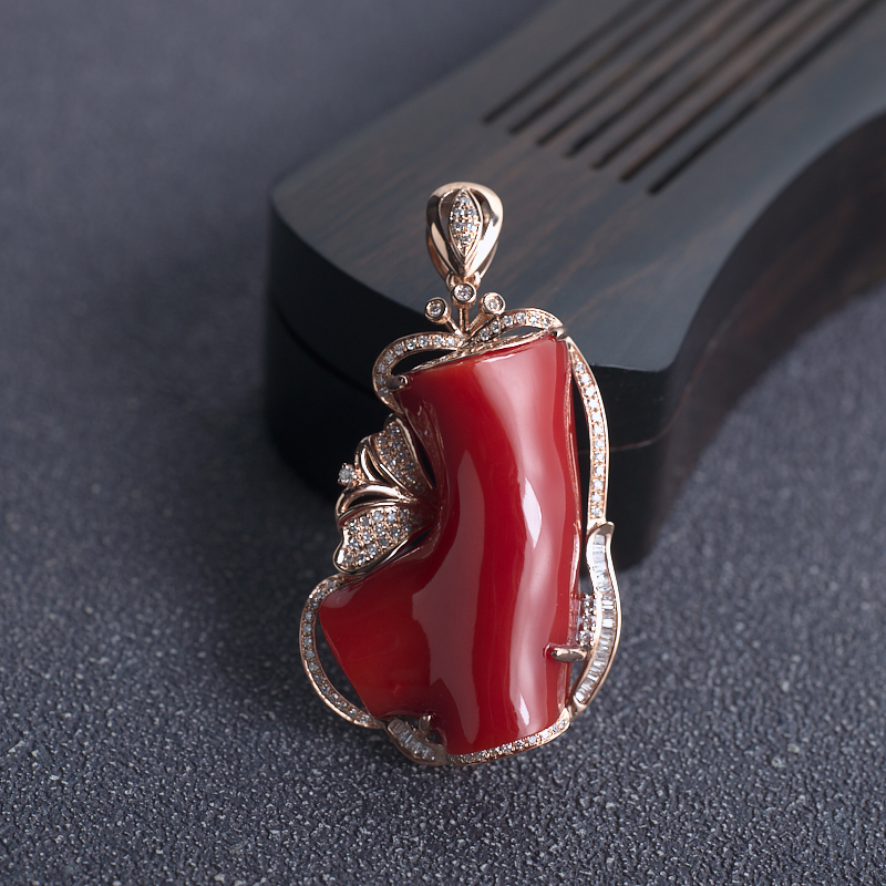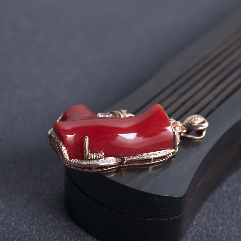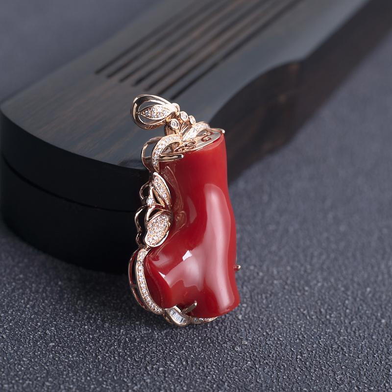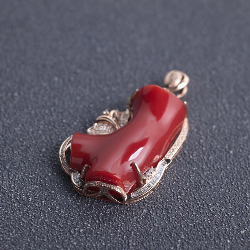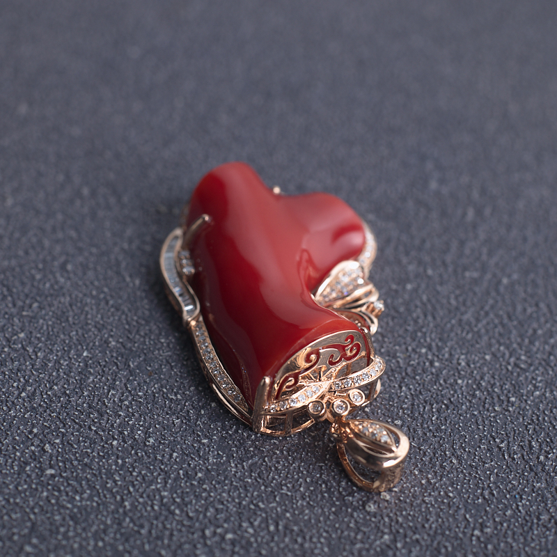 • 18K阿卡牛血红珊瑚树枝吊坠