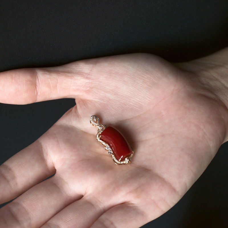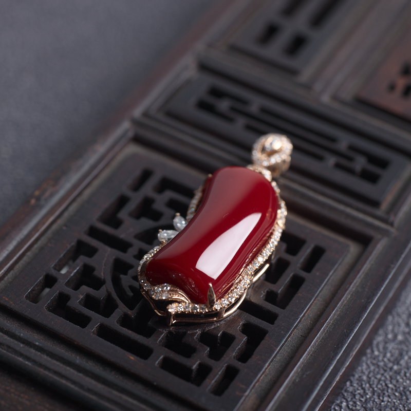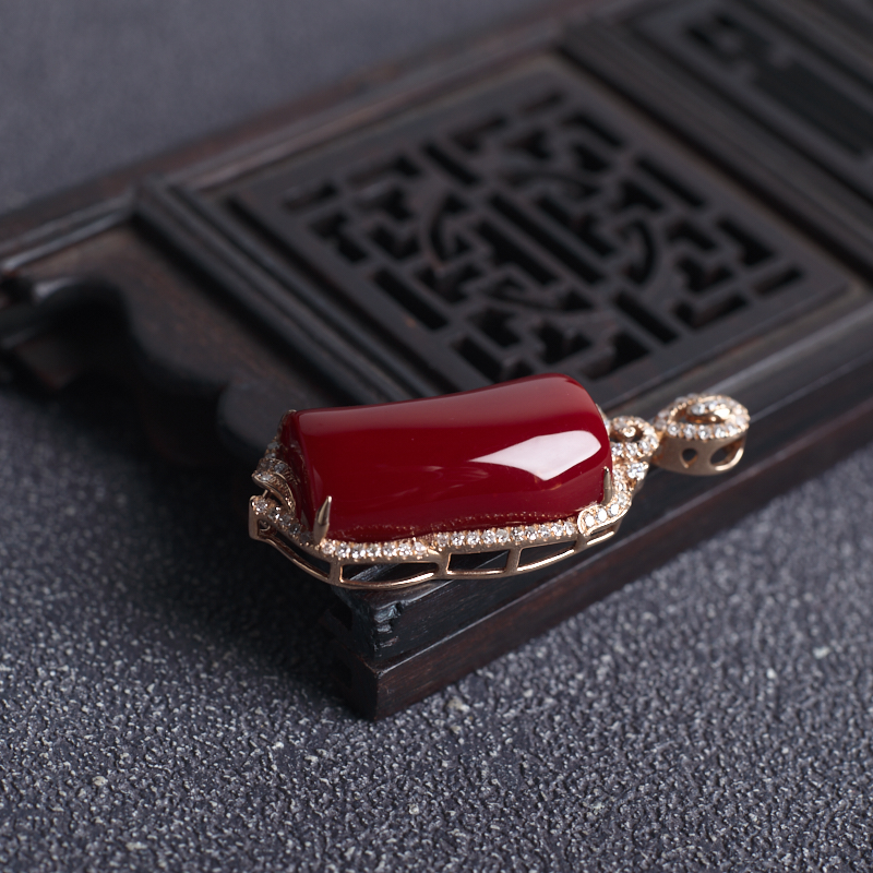 • [名  称] 18K阿卡牛血红珊瑚随形吊坠