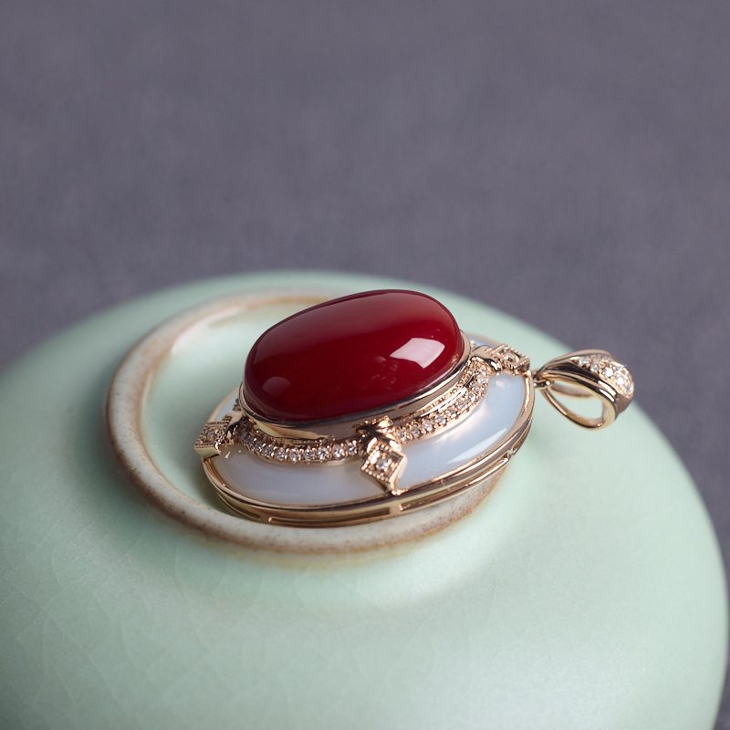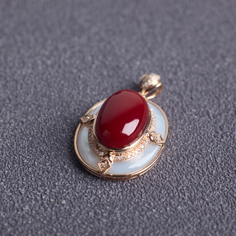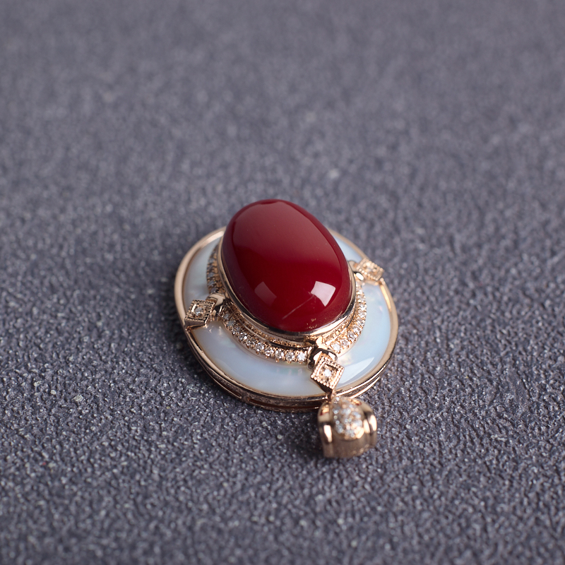• 18K阿卡牛血红珊瑚吊坠