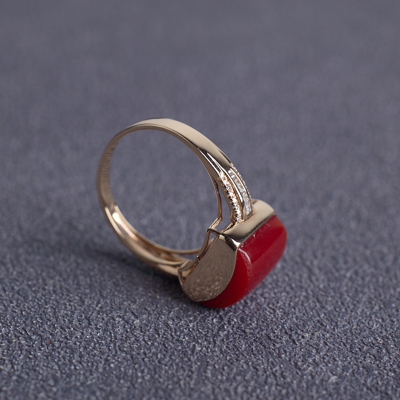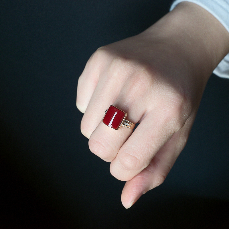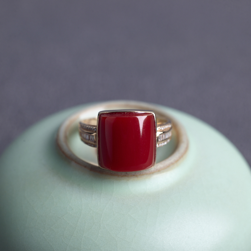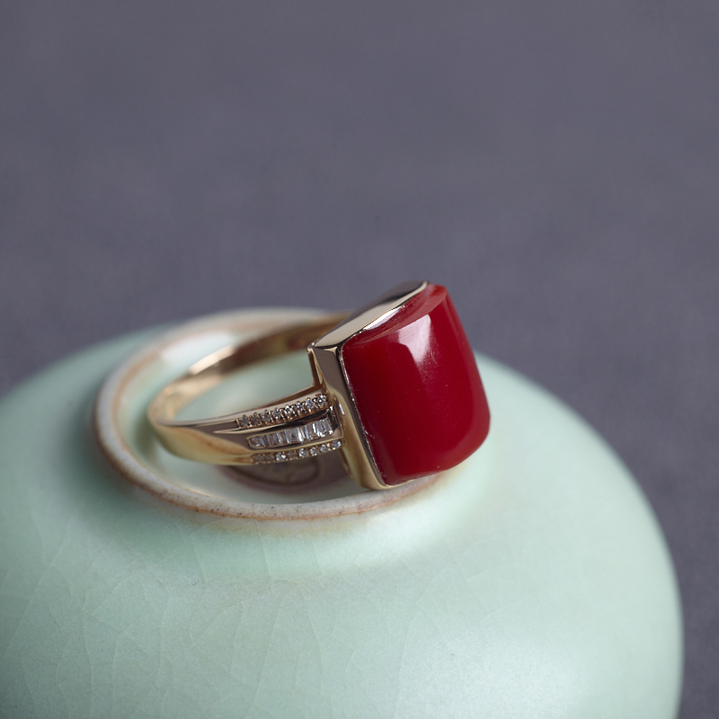 • 18K阿卡牛血红珊瑚方形戒指