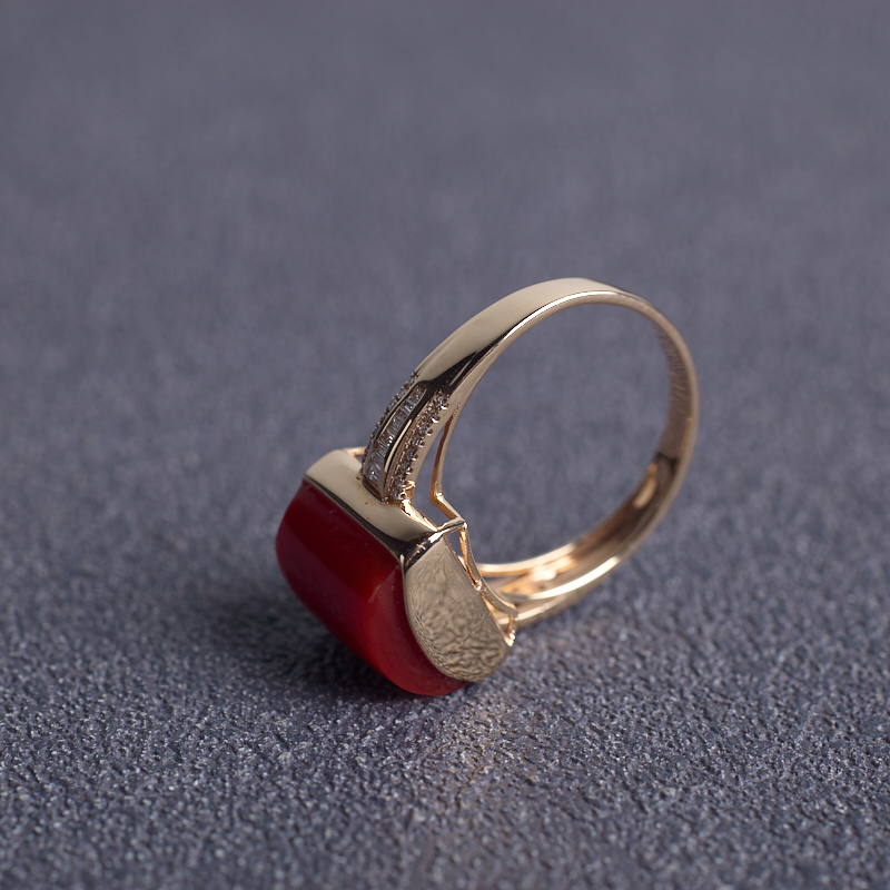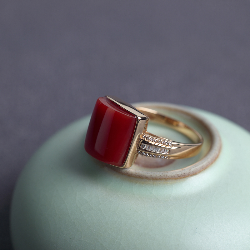 • [名  称] 18K阿卡牛血红珊瑚方形戒指