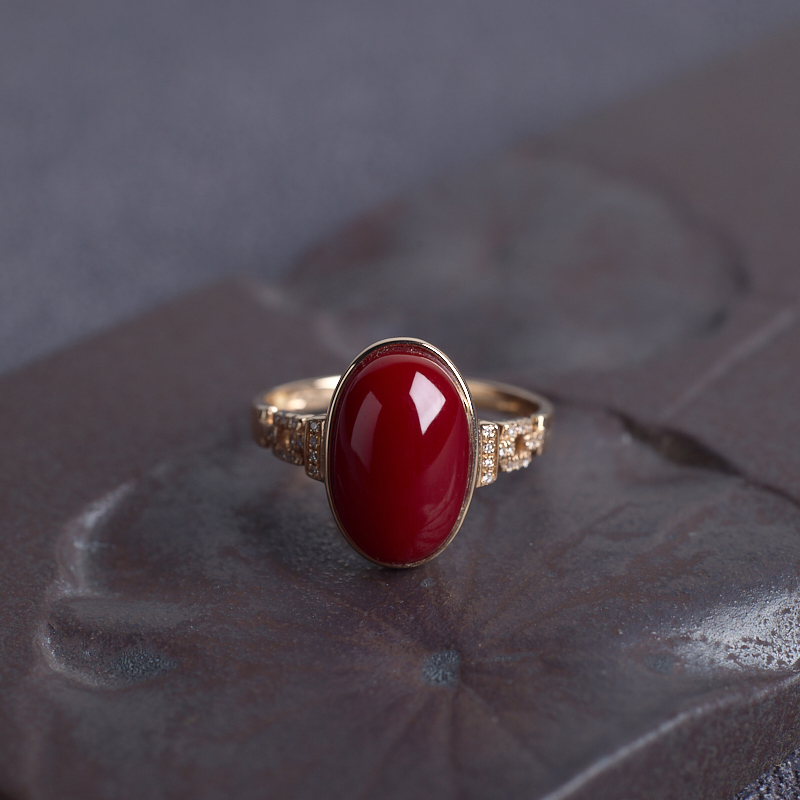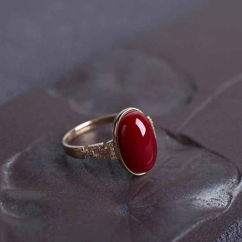 • 18K阿卡牛血红珊瑚戒指
