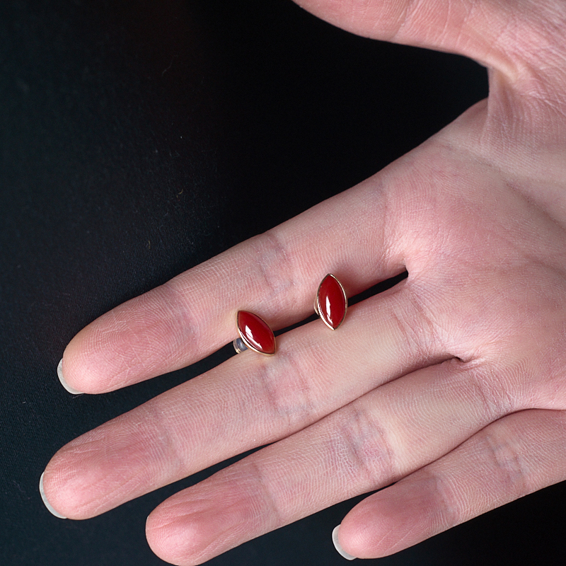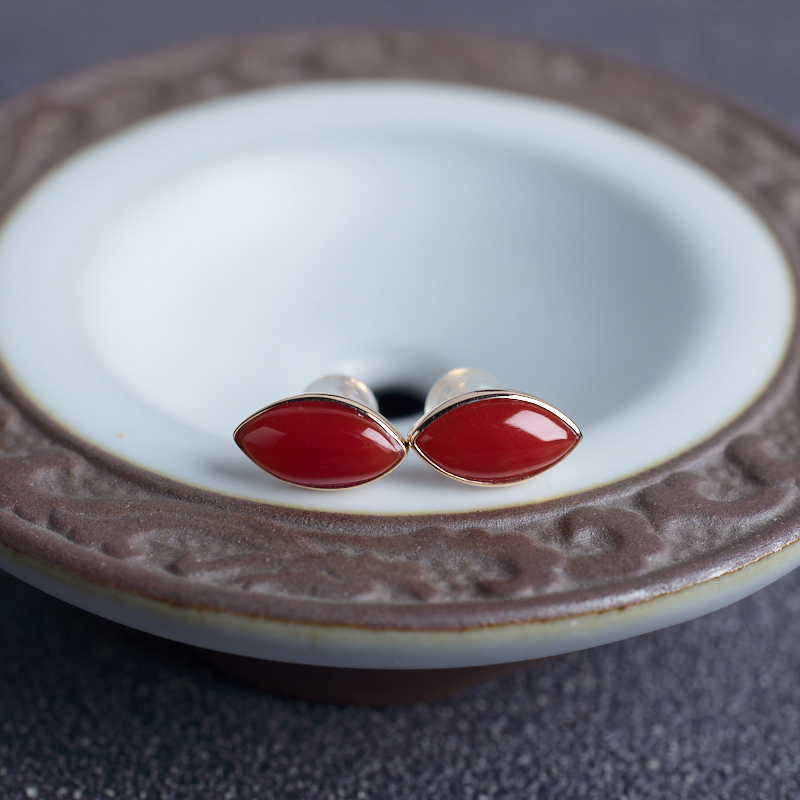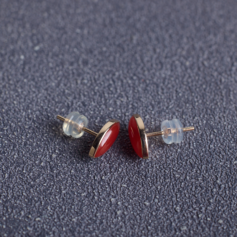 • 18K阿卡牛血红珊瑚马眼形耳钉