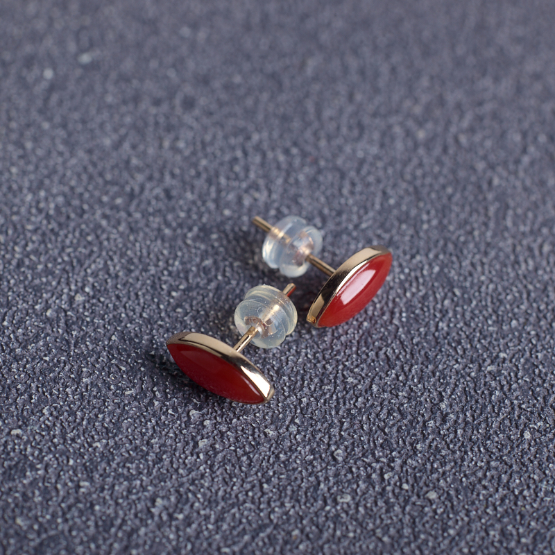 • [名  称] 18K阿卡牛血红珊瑚马眼形耳钉