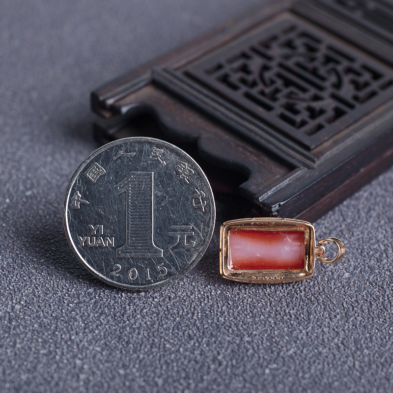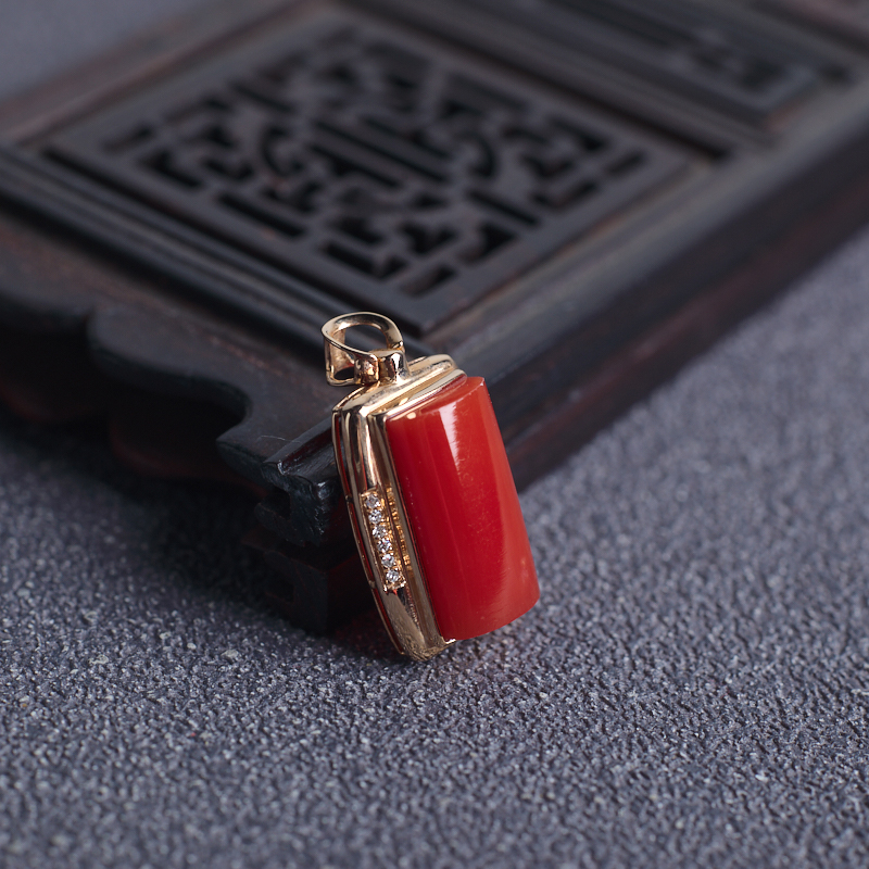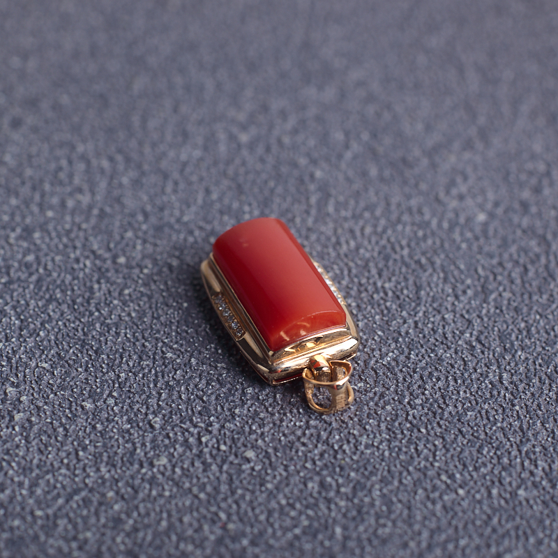 • [名  称] 18K阿卡牛血红珊瑚方形吊坠