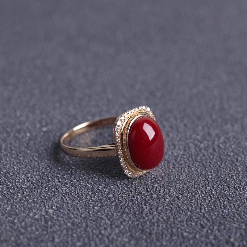 • 18K阿卡牛血红珊瑚戒指