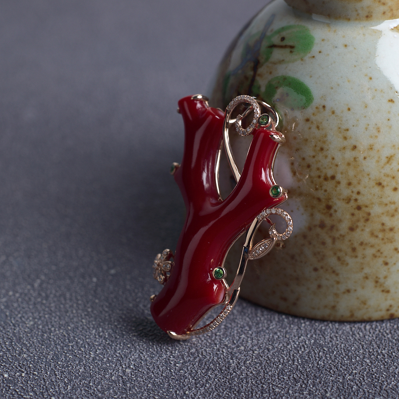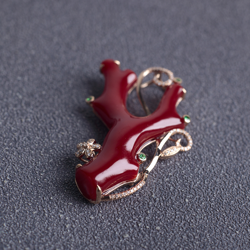 • 18K阿卡牛血红珊瑚树枝吊坠