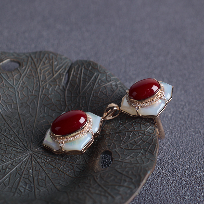 • [名  称] 18K阿卡牛血红珊瑚戒指/吊坠套装