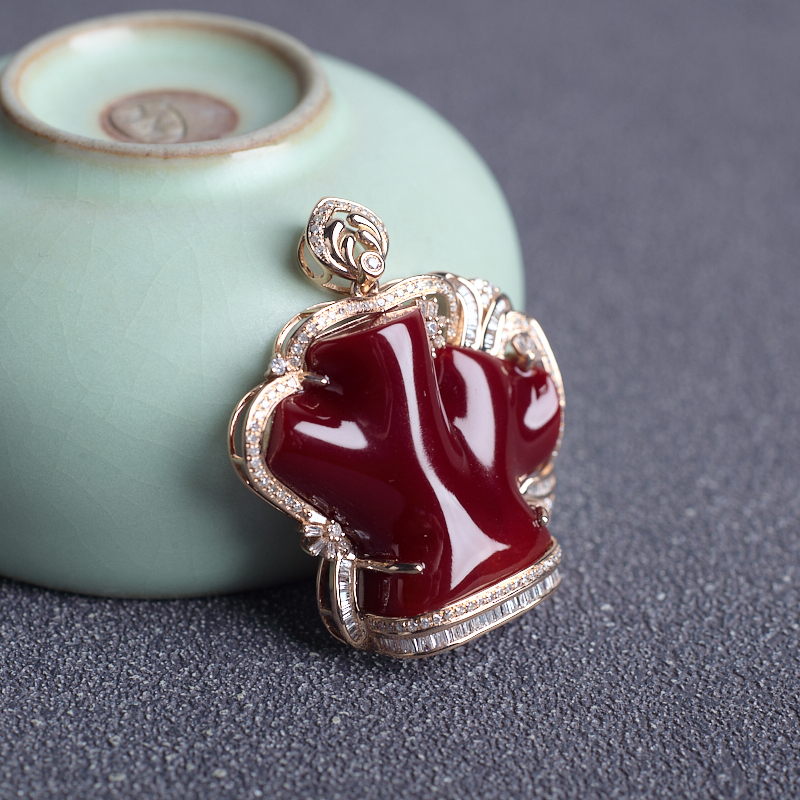 • 18K阿卡牛血红珊瑚树枝吊坠