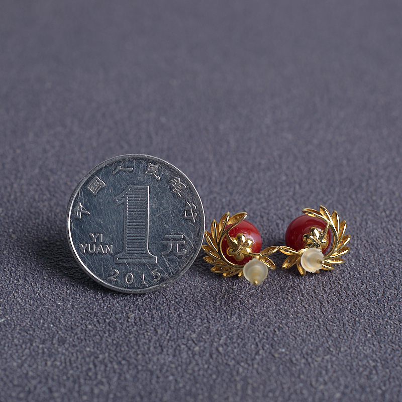 • [名  称] 18K阿卡牛血红珊瑚圆珠耳钉