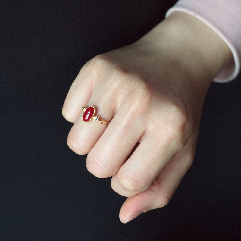 • [名  称] 18K阿卡牛血红珊瑚戒指