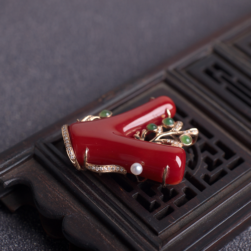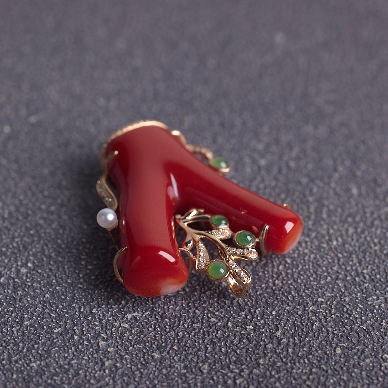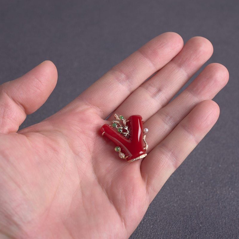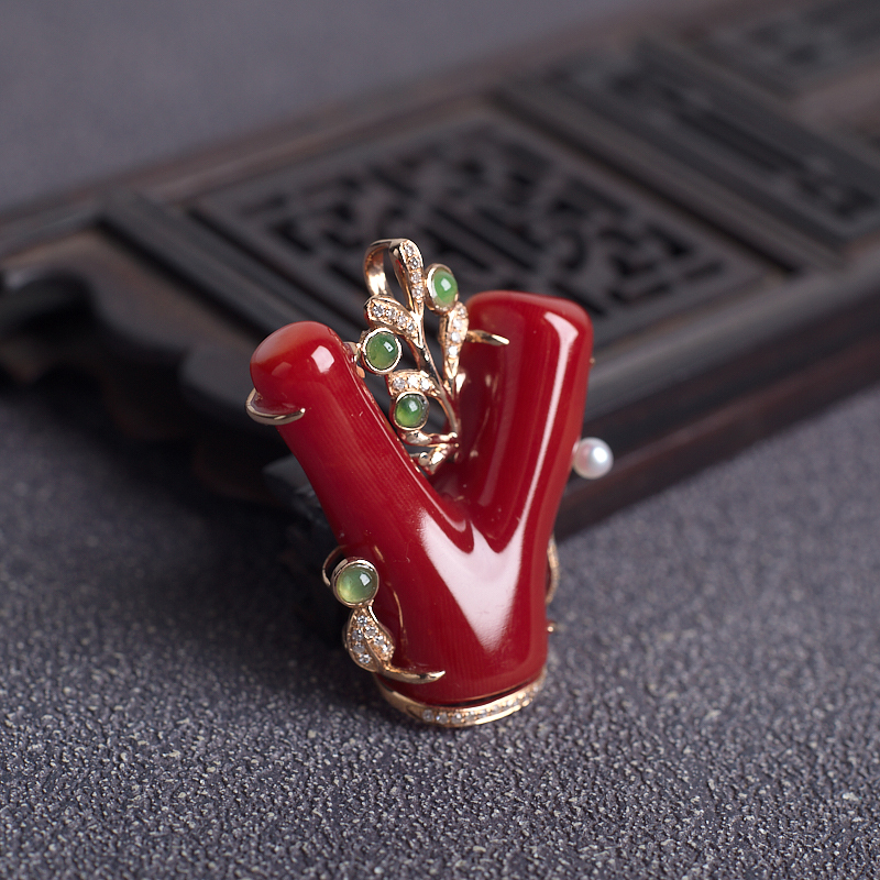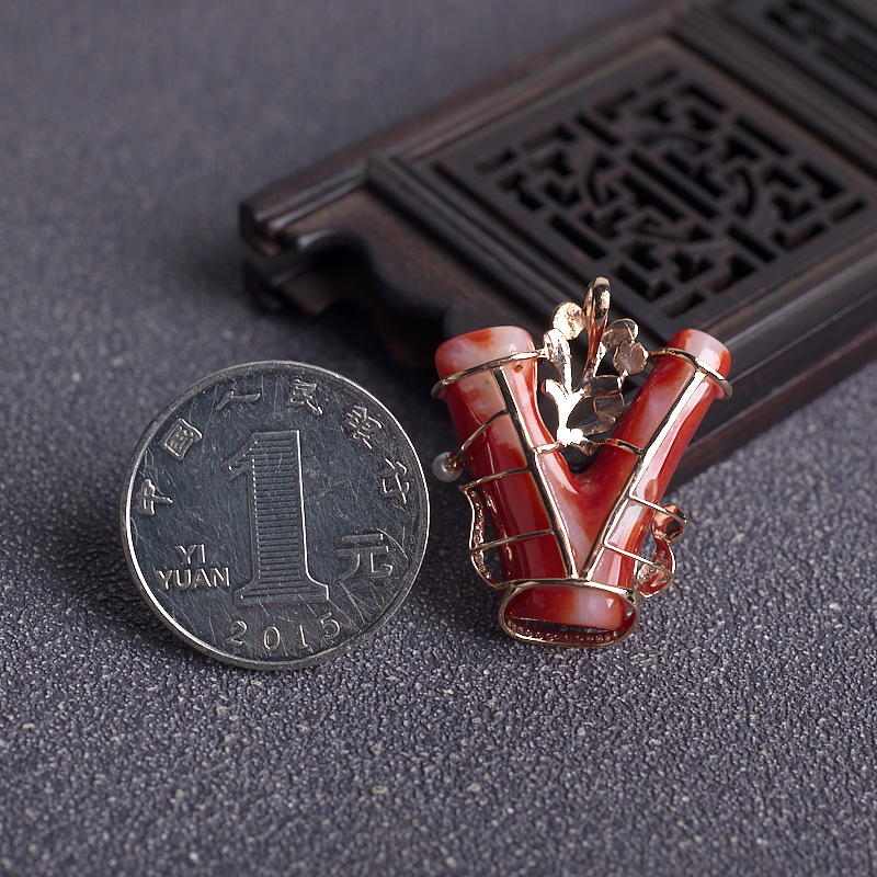 • 18K阿卡牛血红珊瑚树枝吊坠