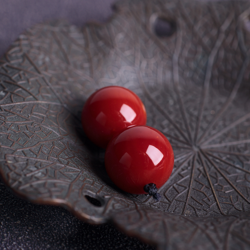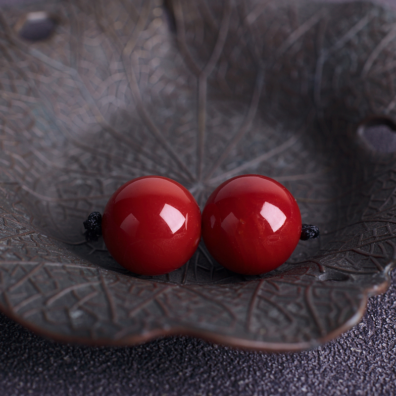 • 13mm阿卡牛血红珊瑚圆珠(两件)