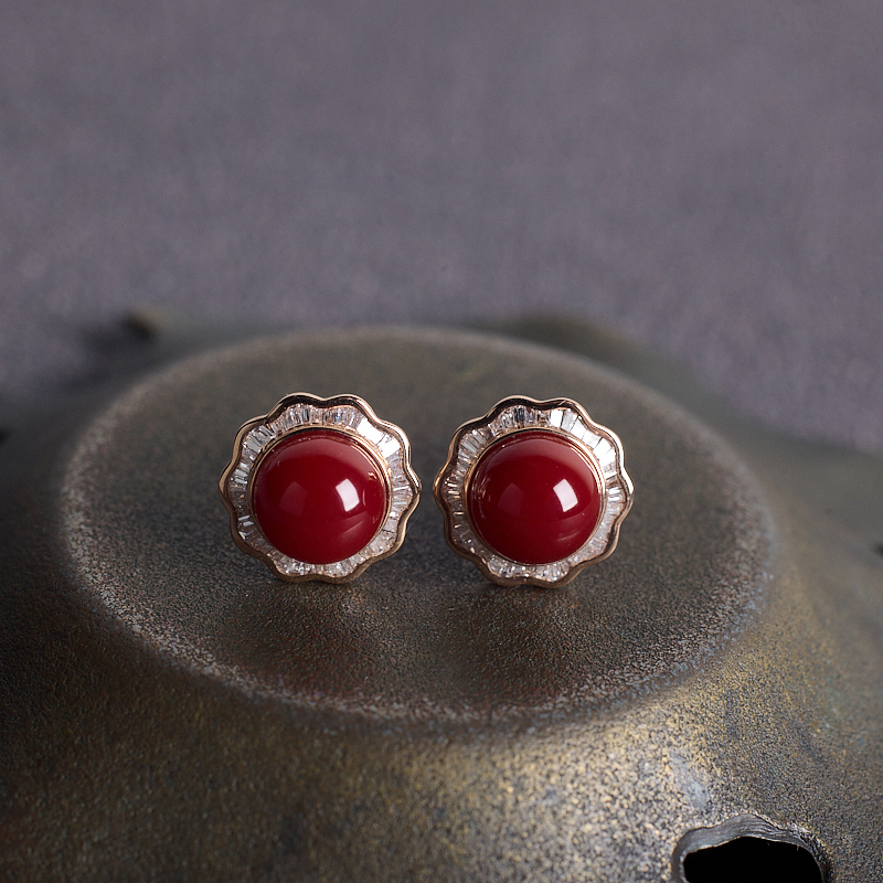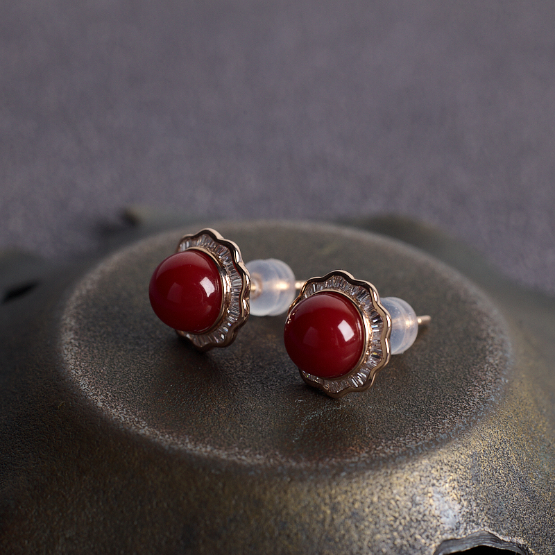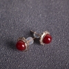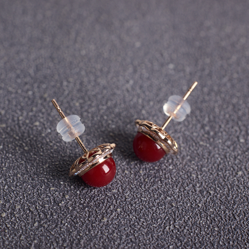 • 18K阿卡牛血红珊瑚圆珠耳钉