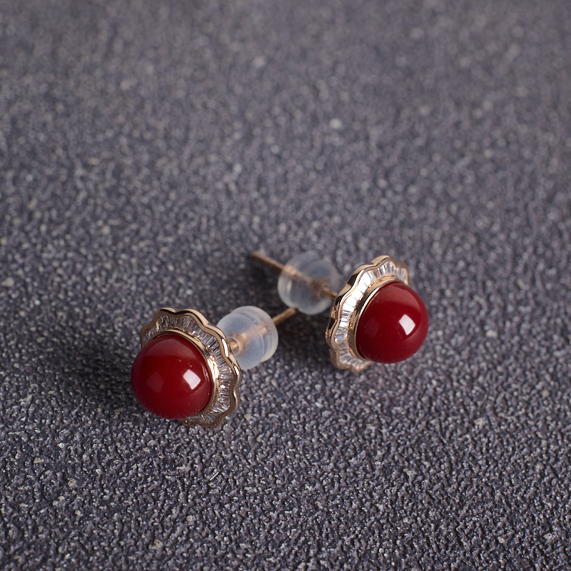 • [名  称] 18K阿卡牛血红珊瑚圆珠耳钉